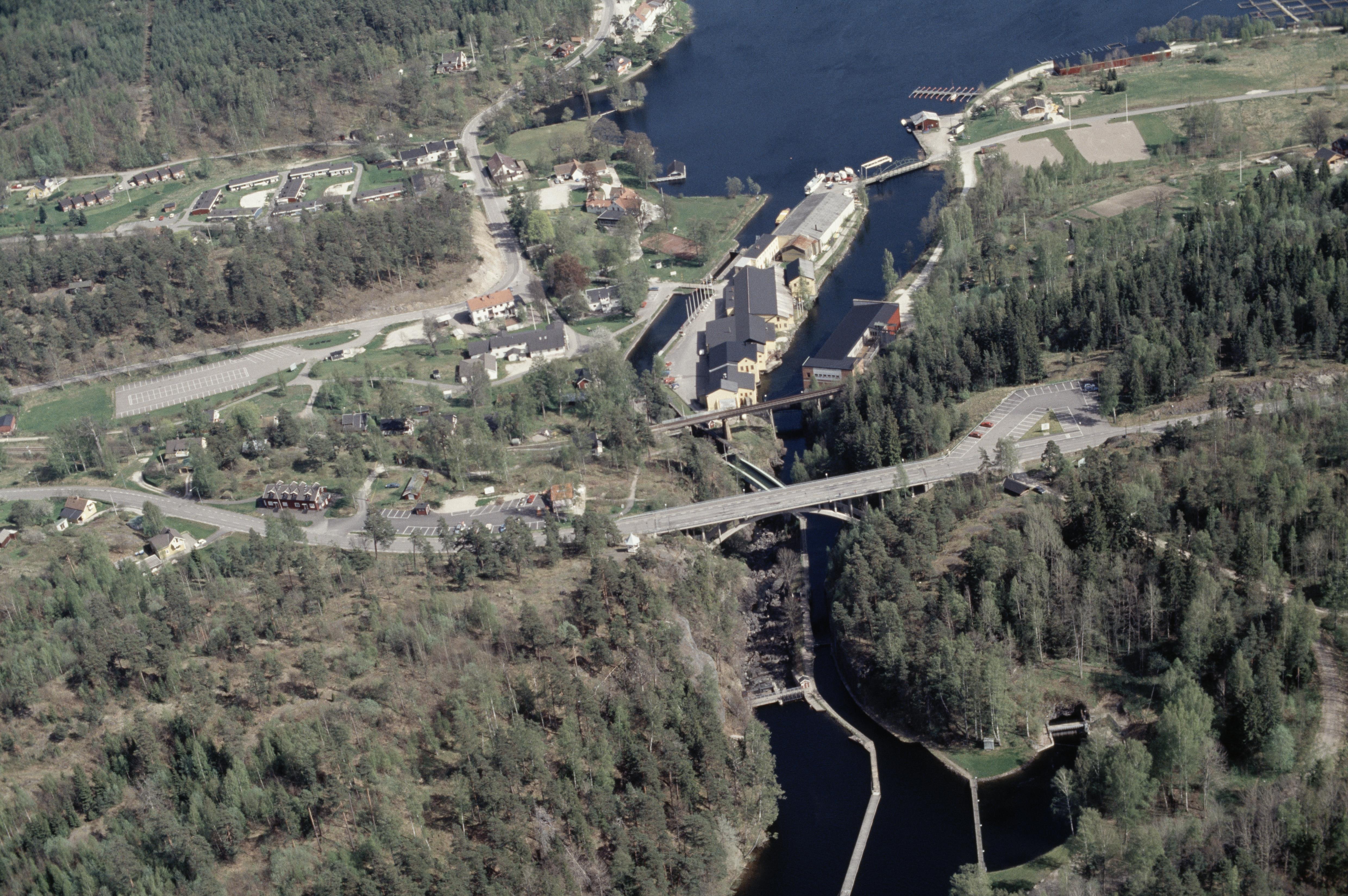 Beskrivning: Dalslands kanal vid byn Håverud, mellan sjöarna Åklång i väst och Övre Upperudshöljen i öst. Bro, järnvägsbro, akvedukt och sluss. Minnesmärke RAÄnr Skållerud 33:1-2. Bilden är tagen mot (väderstreck): SSO