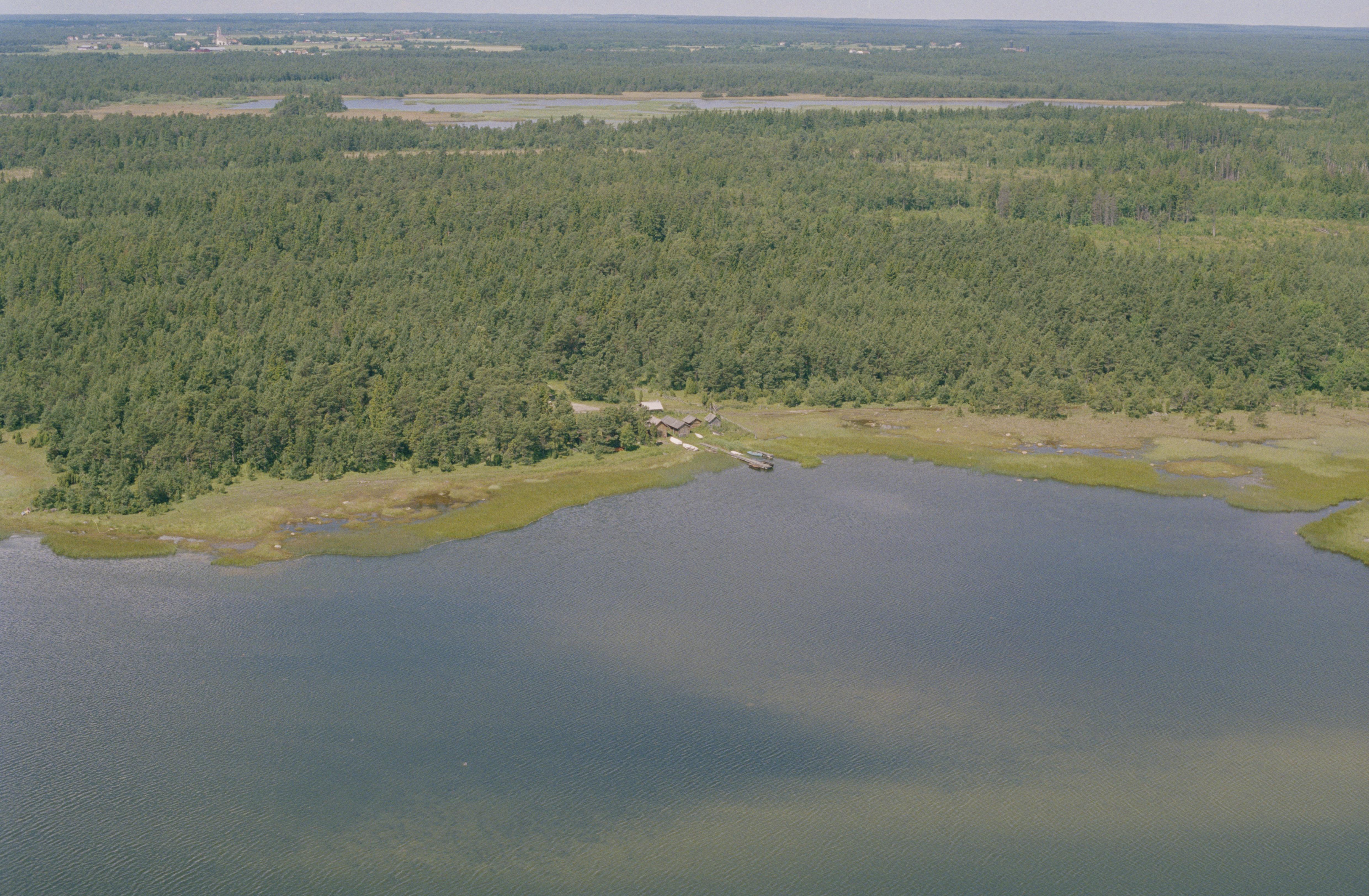 Beskrivning: Fiskeläget Agbod. I skogen till höger om fiskeläget hägnad RAÄnr Gothem 279. I bildens övre del sjön Storsund i Storsunds naturreservat. Bilden är tagen mot (väderstreck): NV