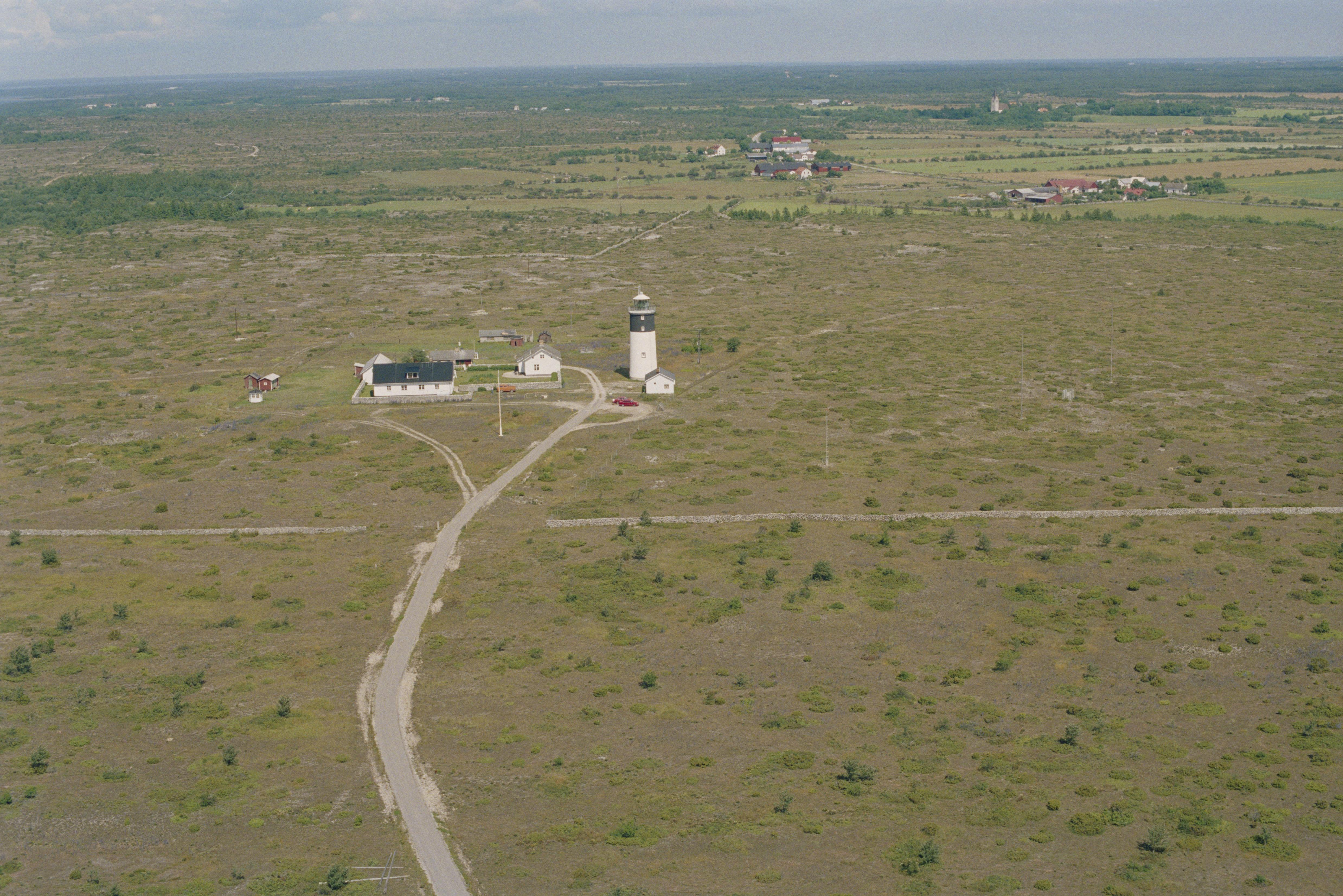 Beskrivning: Hoburgs fyr och fyrplats. Till vänster om fyrplatsen stensättningar RAÄnr Sundre 24:1-4. Uppe till höger Västergårde by mot Sundre kyrka och kyrkby. Bilden är tagen mot (väderstreck): NNO