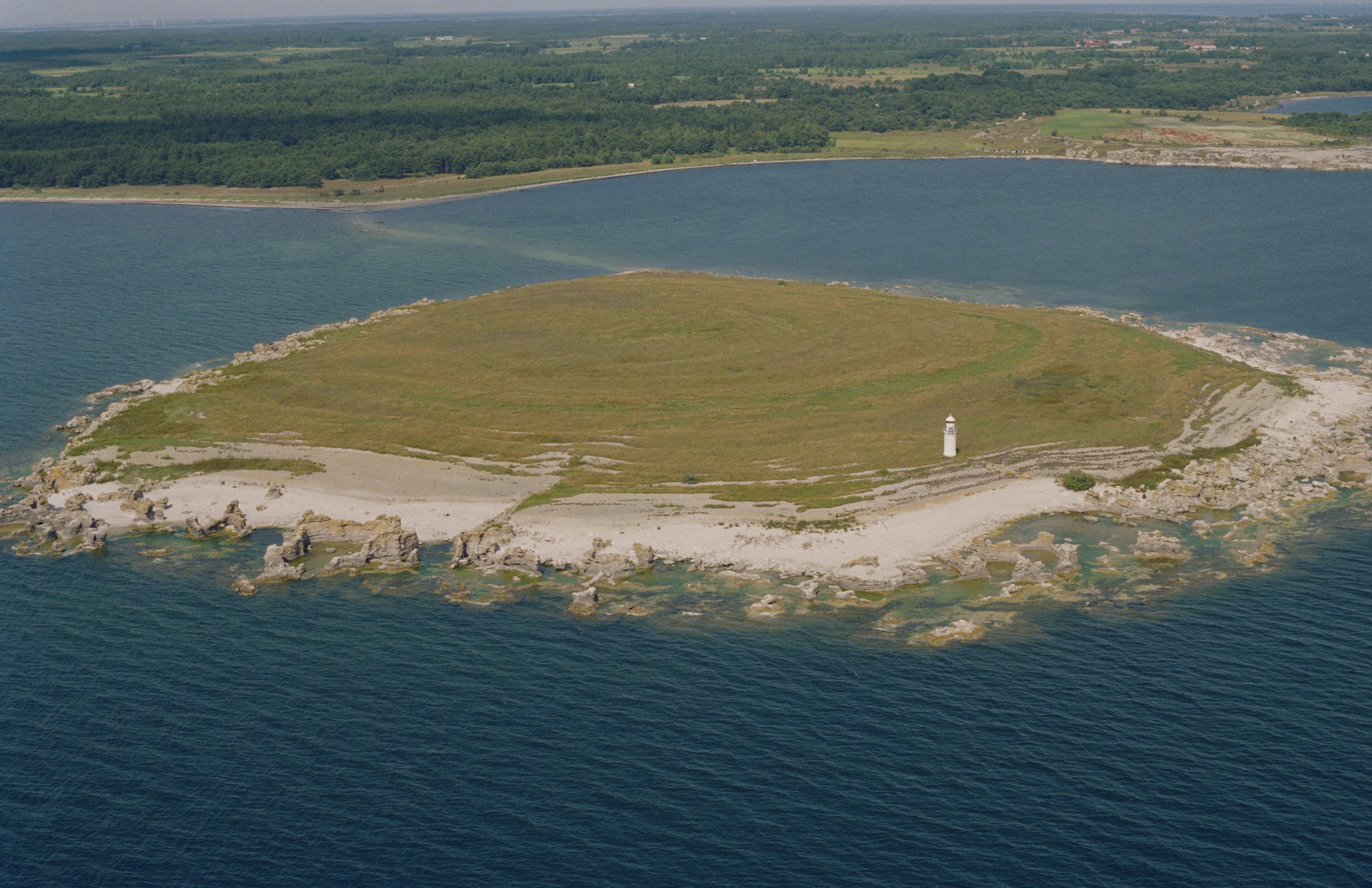 Beskrivning: Heligholmen med fyrplats. I norra delen av holmen båtlämningar RAÄnr Vamlingbo 181:1. På Gotlandsön i bildens övre del fiskeläget Holmhällar med raukområde. Hamra socken till höger i bildens övre kant. Bilden är tagen mot (väderstreck): NNO