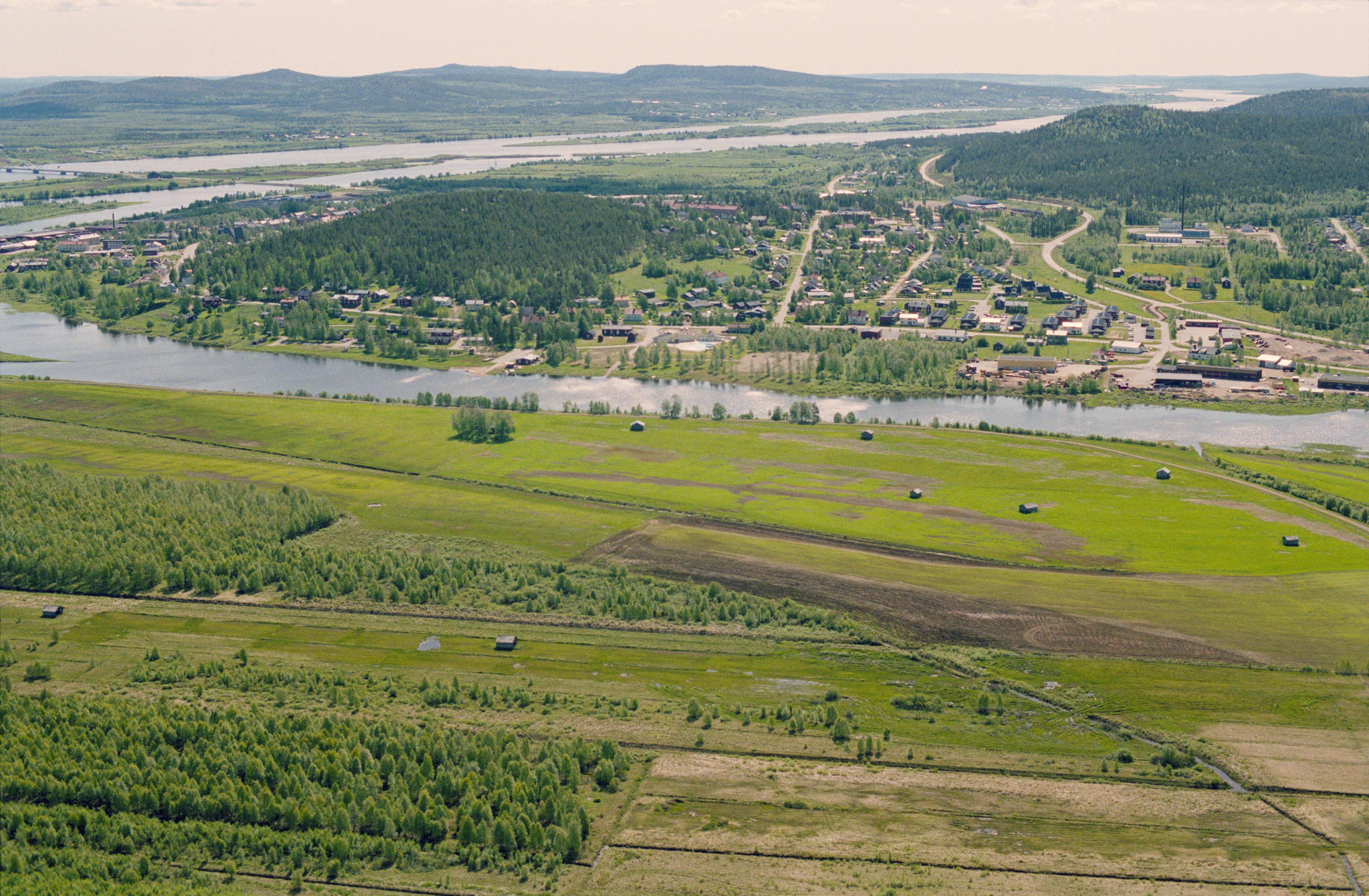 Beskrivning: Tornedalen nordost om Haapakylä by. Ängslador och odlingsmark på ön Haapakylänsaari vid vattenområdet Haapakylänpuas i Torneälven. Över bildens mitt bytomt RAÄnr Övertorneå 29:1. Övertorneå tätort i bildens övre del. Bilden är tagen mot (väderstreck): S