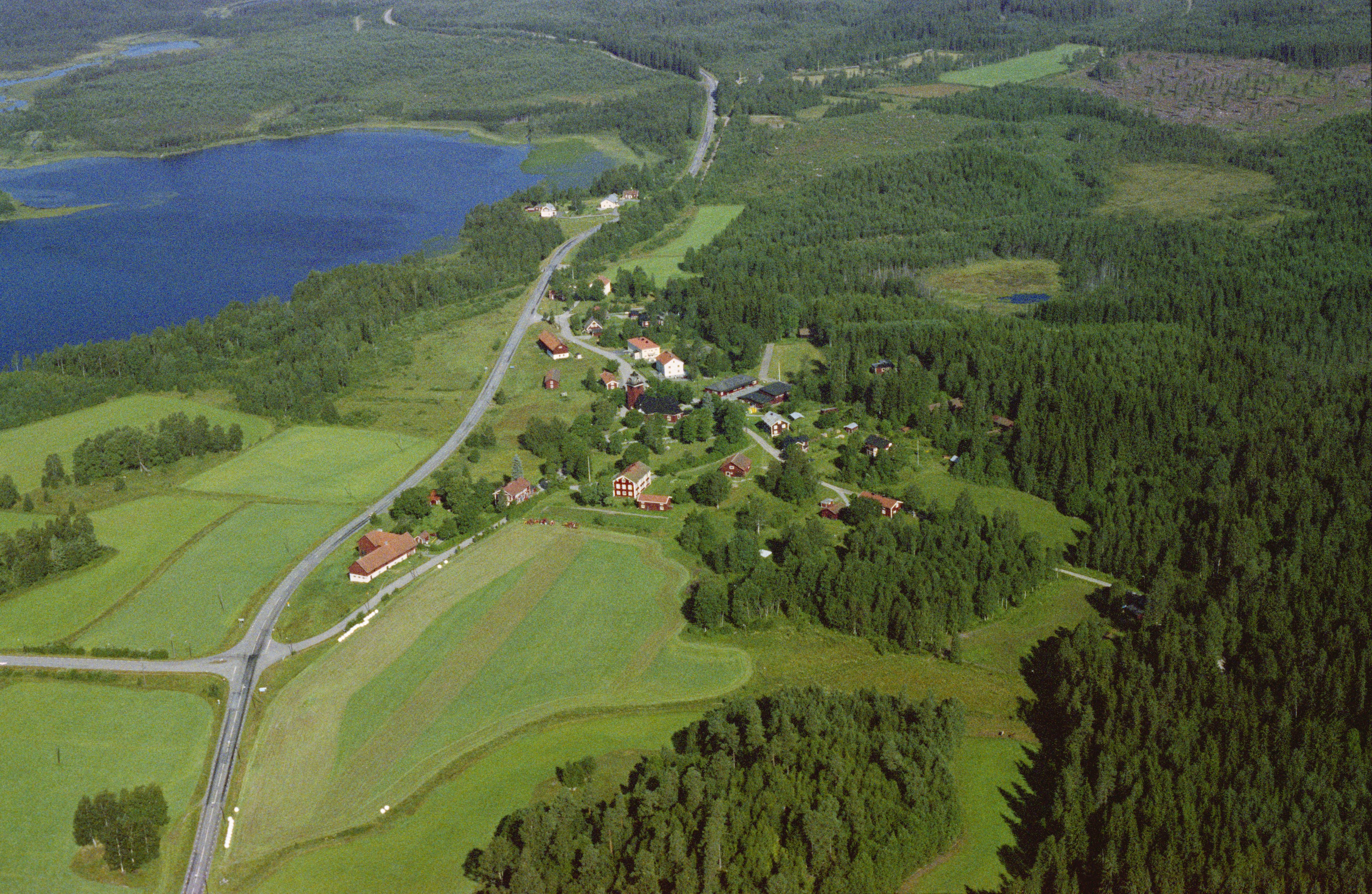 Beskrivning: Hjulsjö kyrkby. Hjulsjö kyrka vid bildens mitt. Sjön Kvisseln uppe till vänster. Bilden är tagen mot (väderstreck): VNV