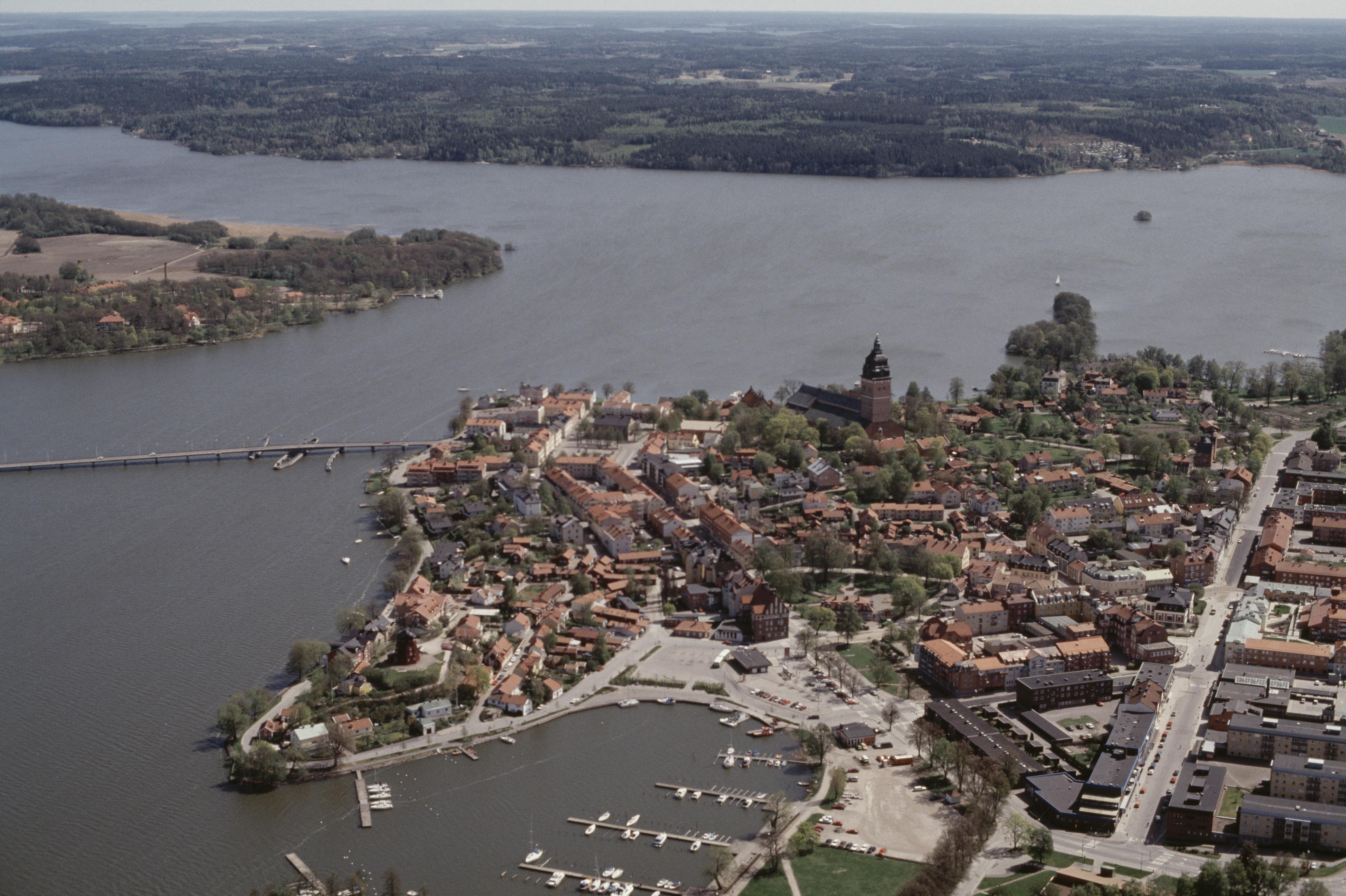 Beskrivning: Strängnäs stad. Strängnäs domkyrka vid bildens mitt. Bilden är tagen mot (väderstreck): NO