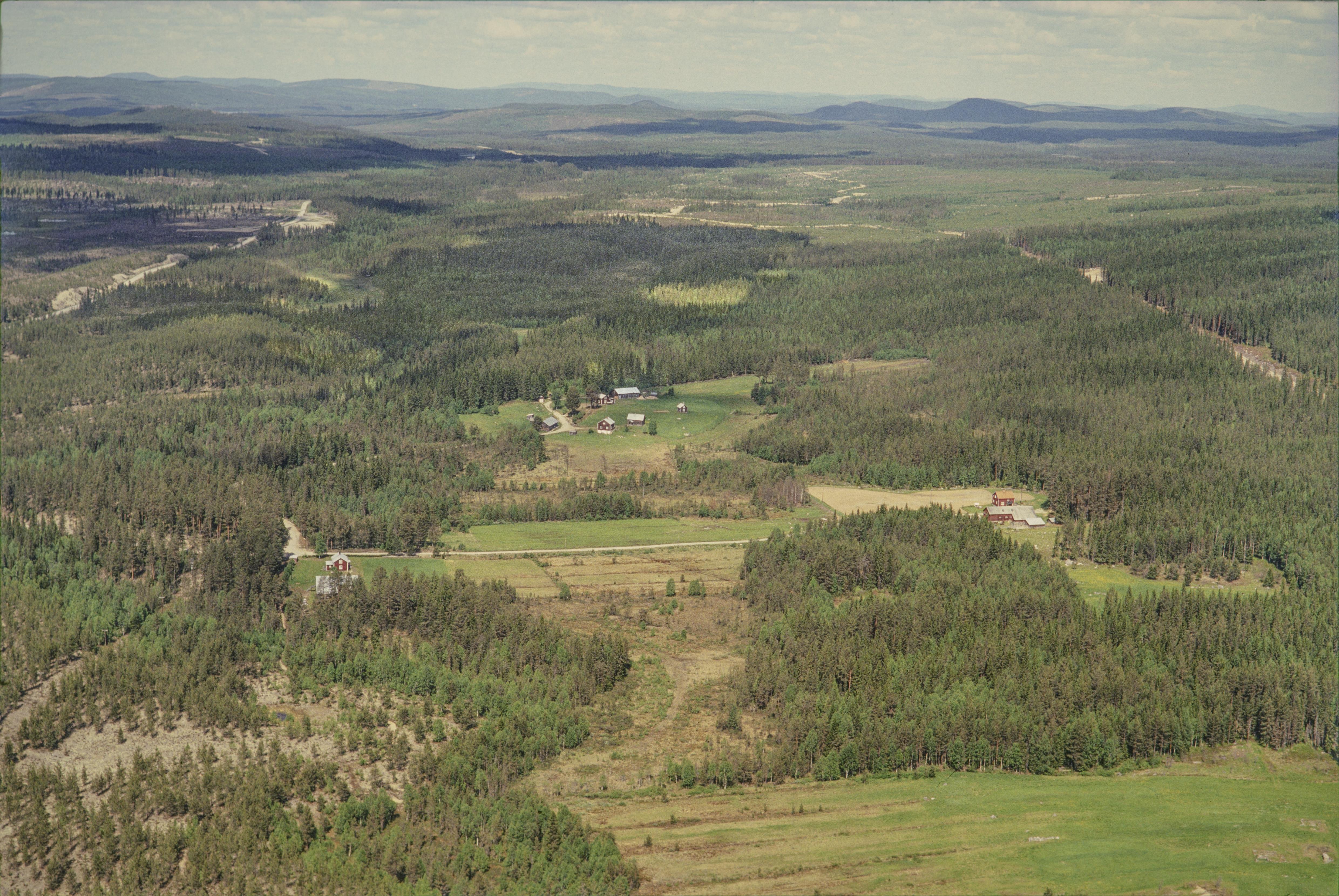 Beskrivning: Torpet Eliasmyren (skrivs även Eliasmyrorna) vid bildens mitt. Till vänster i bildens övre del brott / täktgrop Anundsjö 710. Bilden är tagen mot (väderstreck): NNV