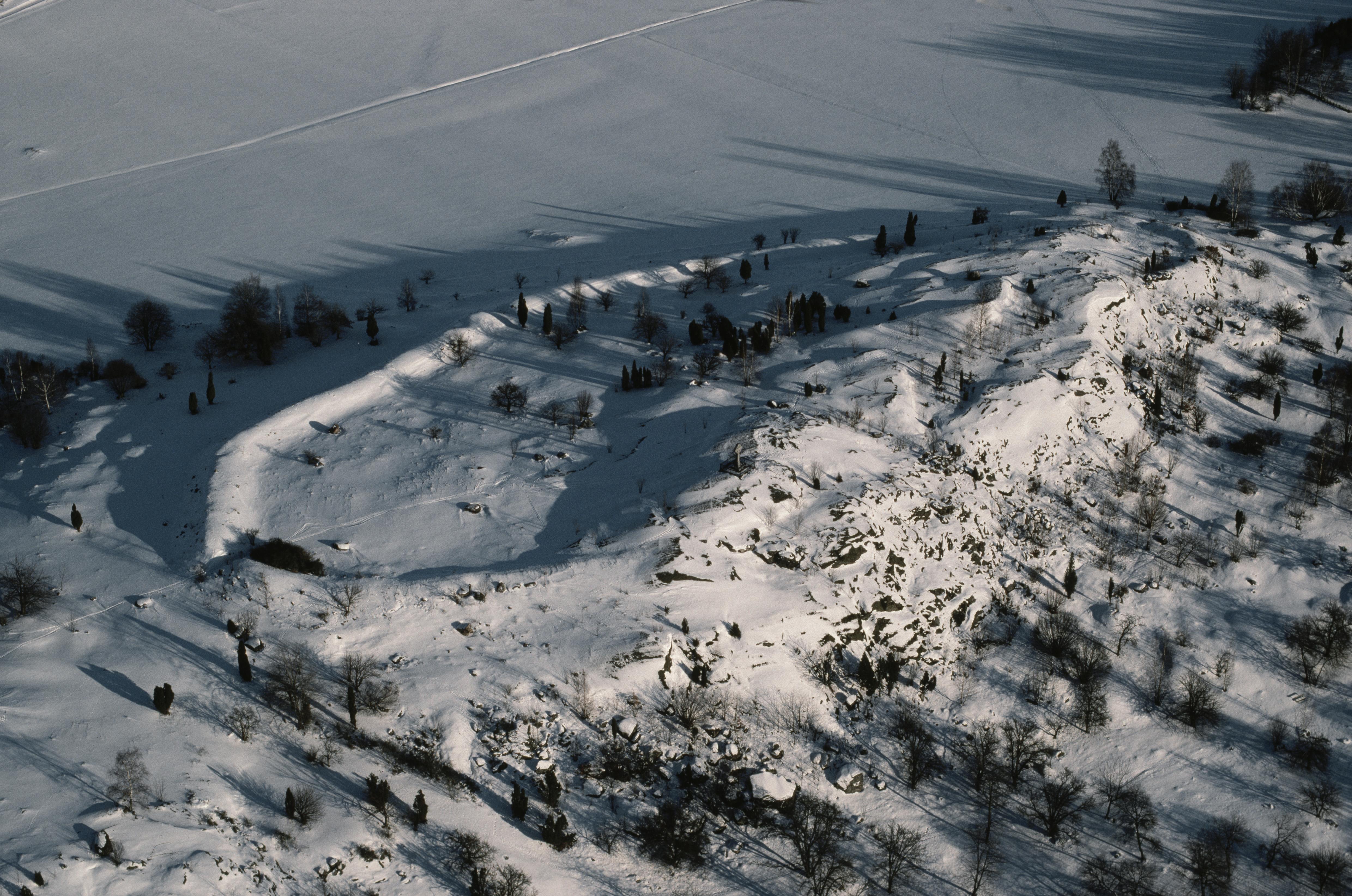 Beskrivning: Fornlämningsområdet Birka på Björkö i Mälaren. Fornborg Borg RAÄnr Adelsö 34:1. Till höger gravfält Borgs hage RAÄnr Adelsö 35:1. Bilden är tagen mot (väderstreck): ONO
