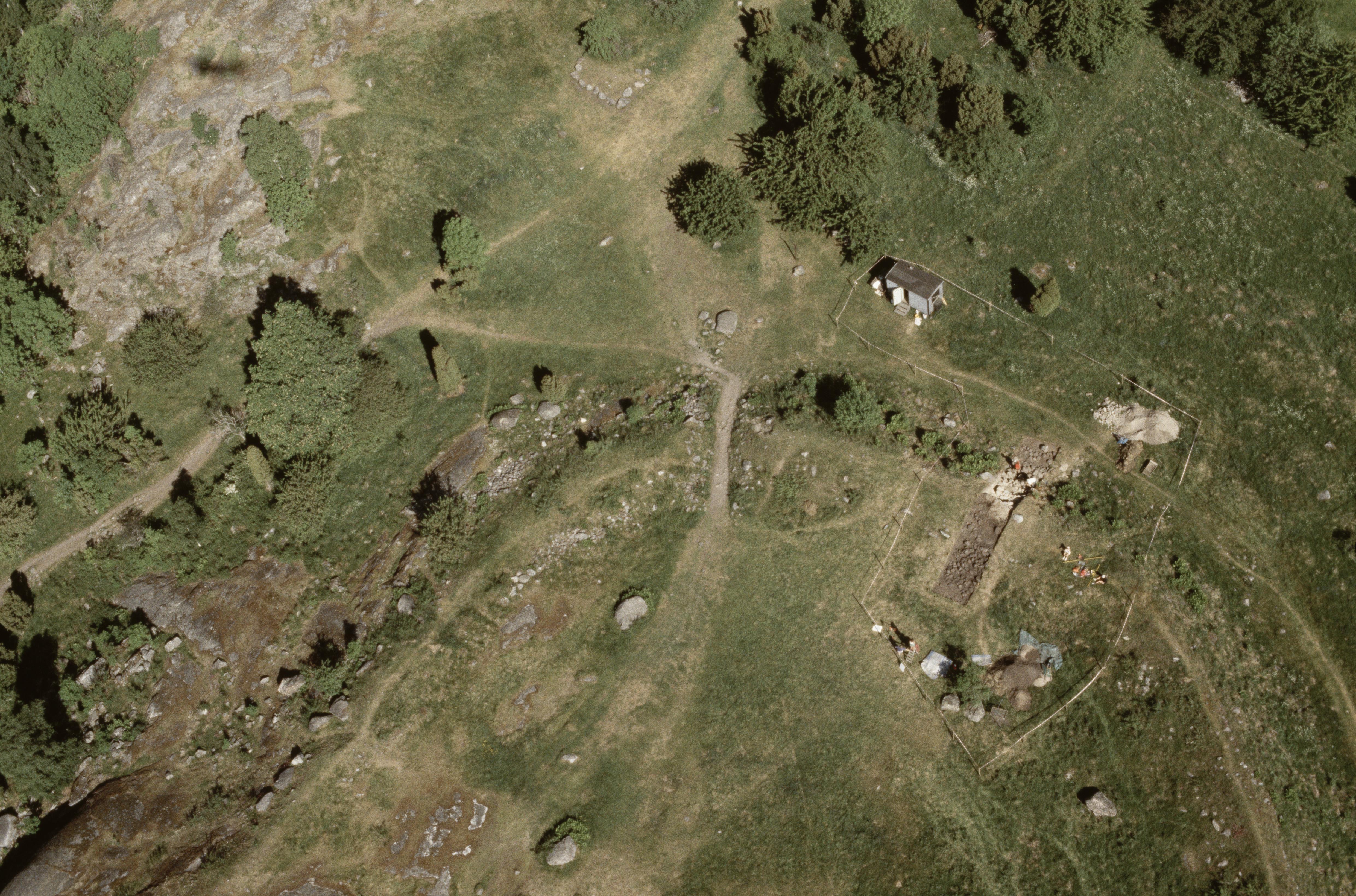 Beskrivning: Fornlämningsområdet Birka på Björkö i Mälaren.Arkeologisk undersökning i vallen till fornborg Borg RAÄnr Adelsö 34:1. Bilden är tagen mot (väderstreck): NV