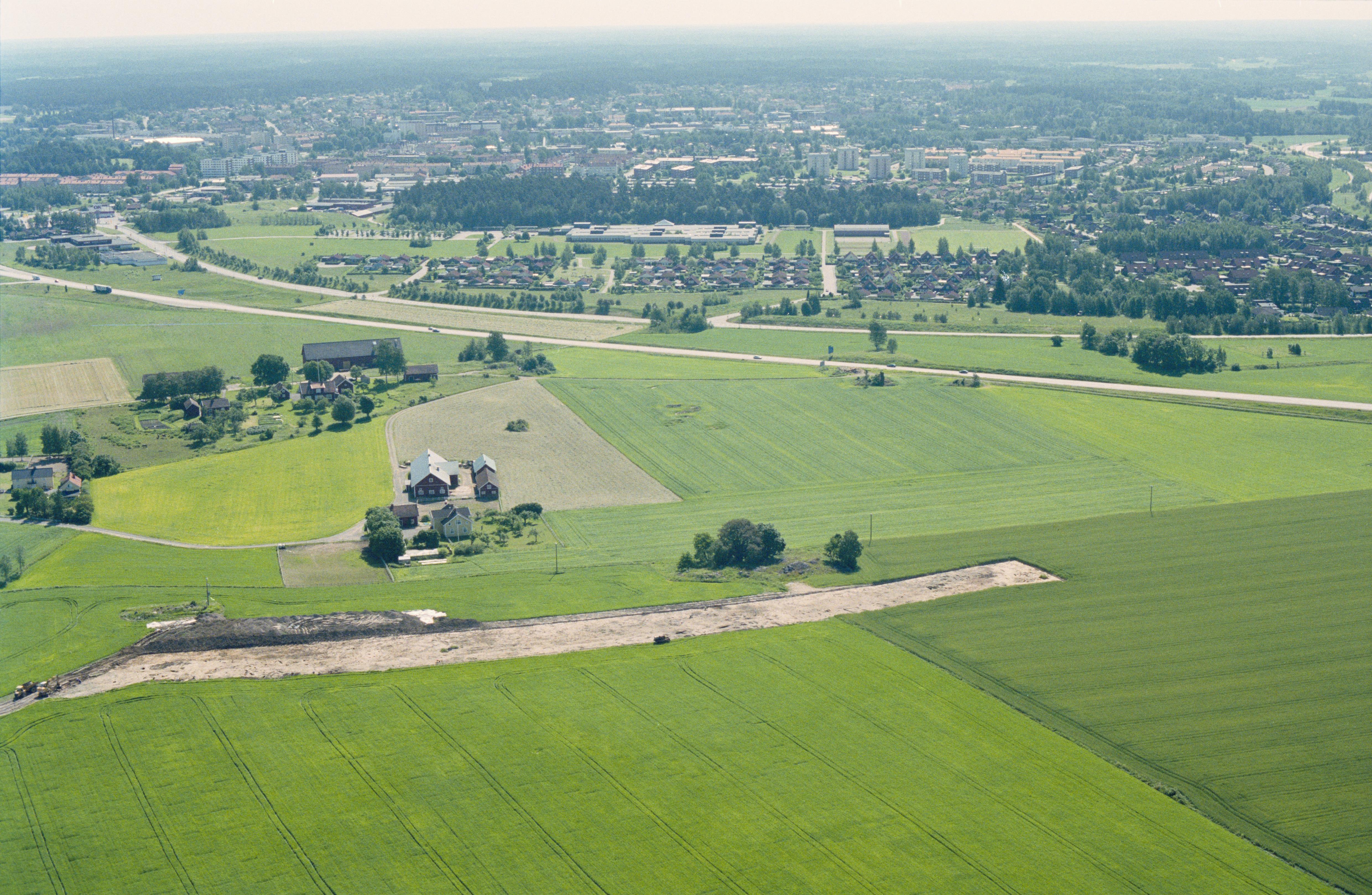 Beskrivning: Arkeologisk undersökning vid gränsen mellan socknen Högby och Mjölby innan bygging av ny väg. Boplats RAÄnr Högby 89:1 m.fl. Bilden är tagen mot (väderstreck): VNV