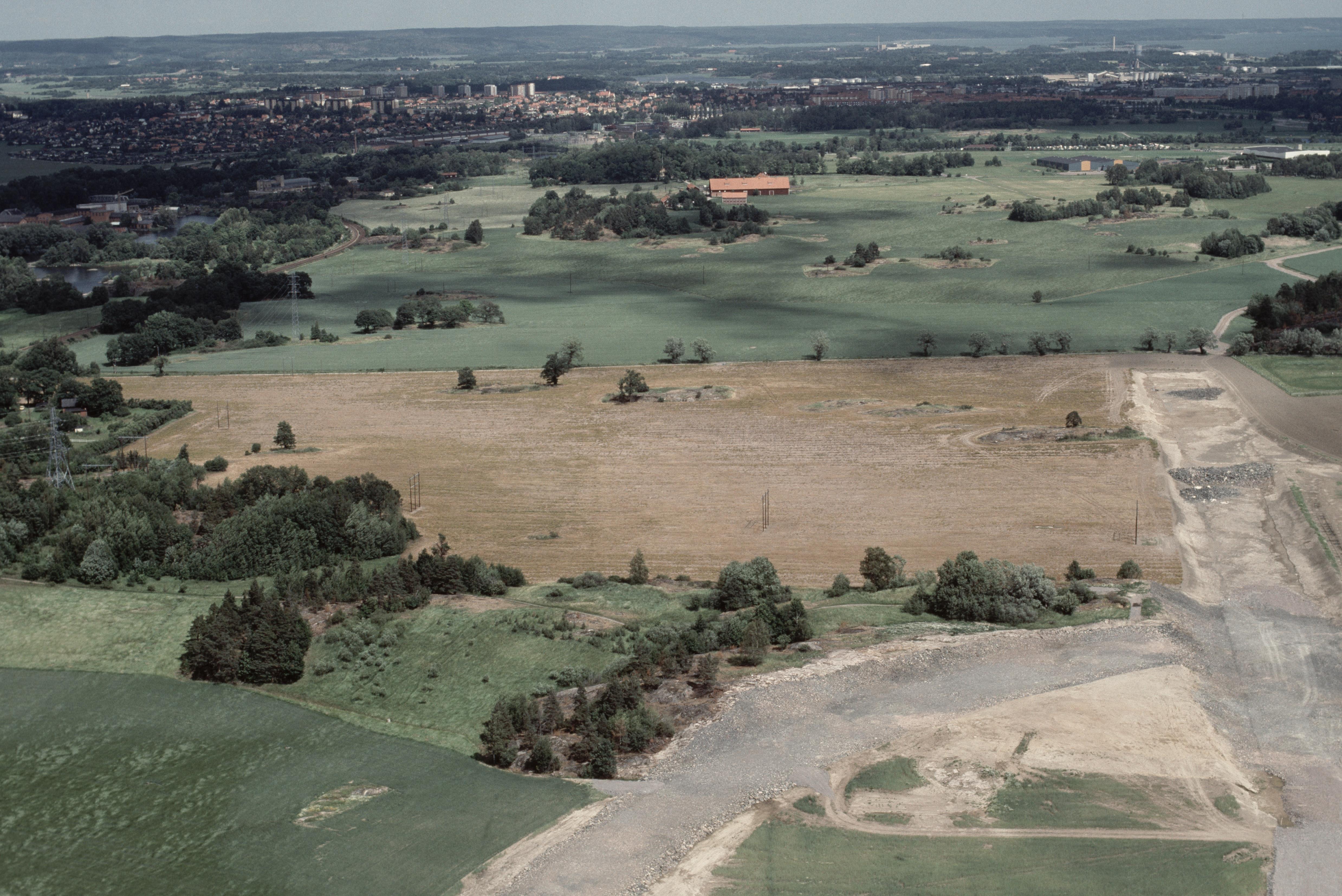 Beskrivning: (Tid. Borgs socken). Bygge av väg E4 genom hällristningsområde RAÄnr Borg 23:1, 24:1, 25:1, 26:1-2, 27:1 m.fl. Borgs säteri och Skälvs gård. I bildens övre del Norrköpings stad. Bilden är tagen mot (väderstreck): NO