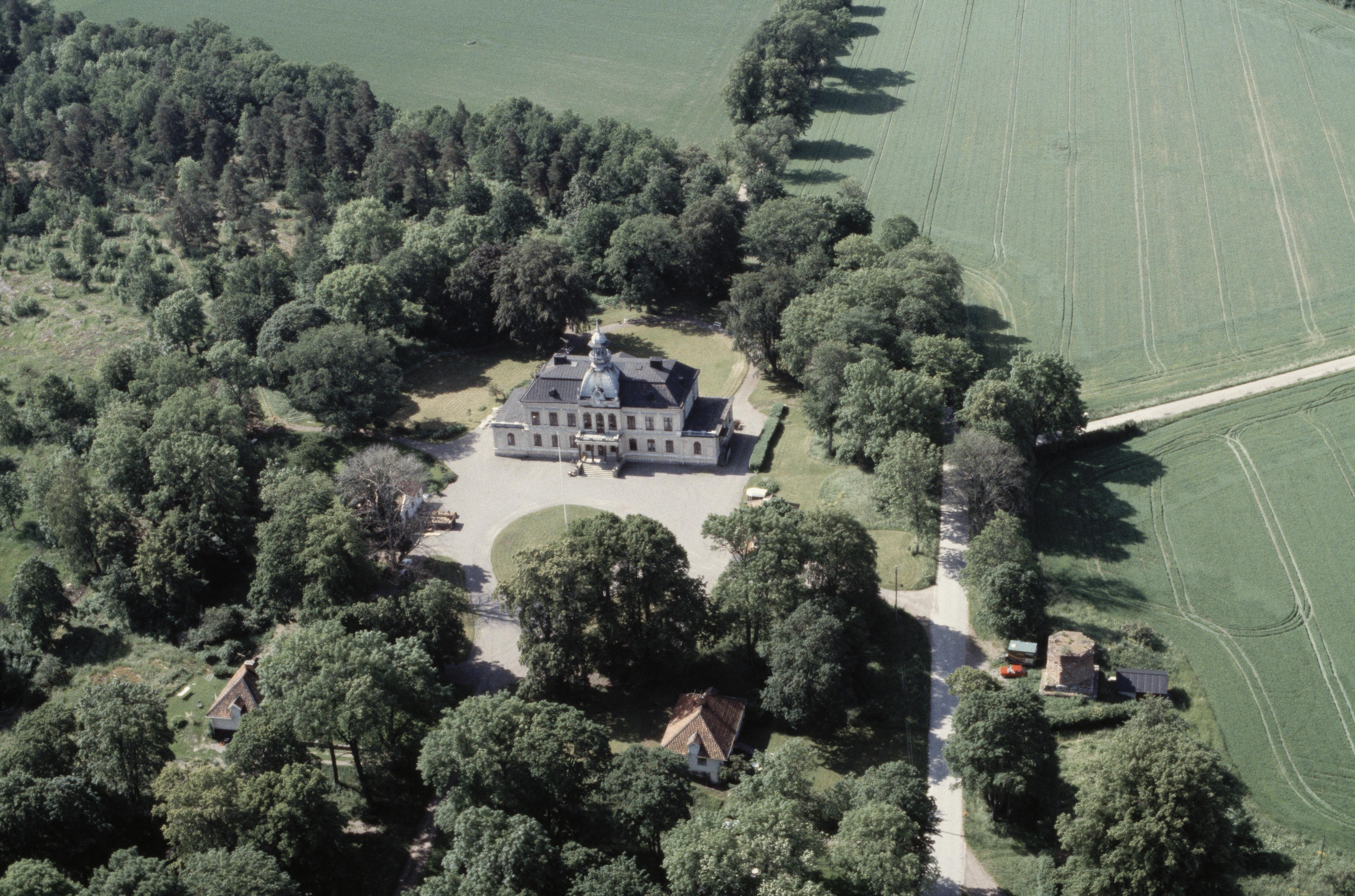 Beskrivning: Brogårds herrgård (skrivs även Bro Hof slott). Herrgården har underjordiska gångar till flygelbyggnaderna RAÄnr Bro 91:1. Bilden är tagen mot (väderstreck): S