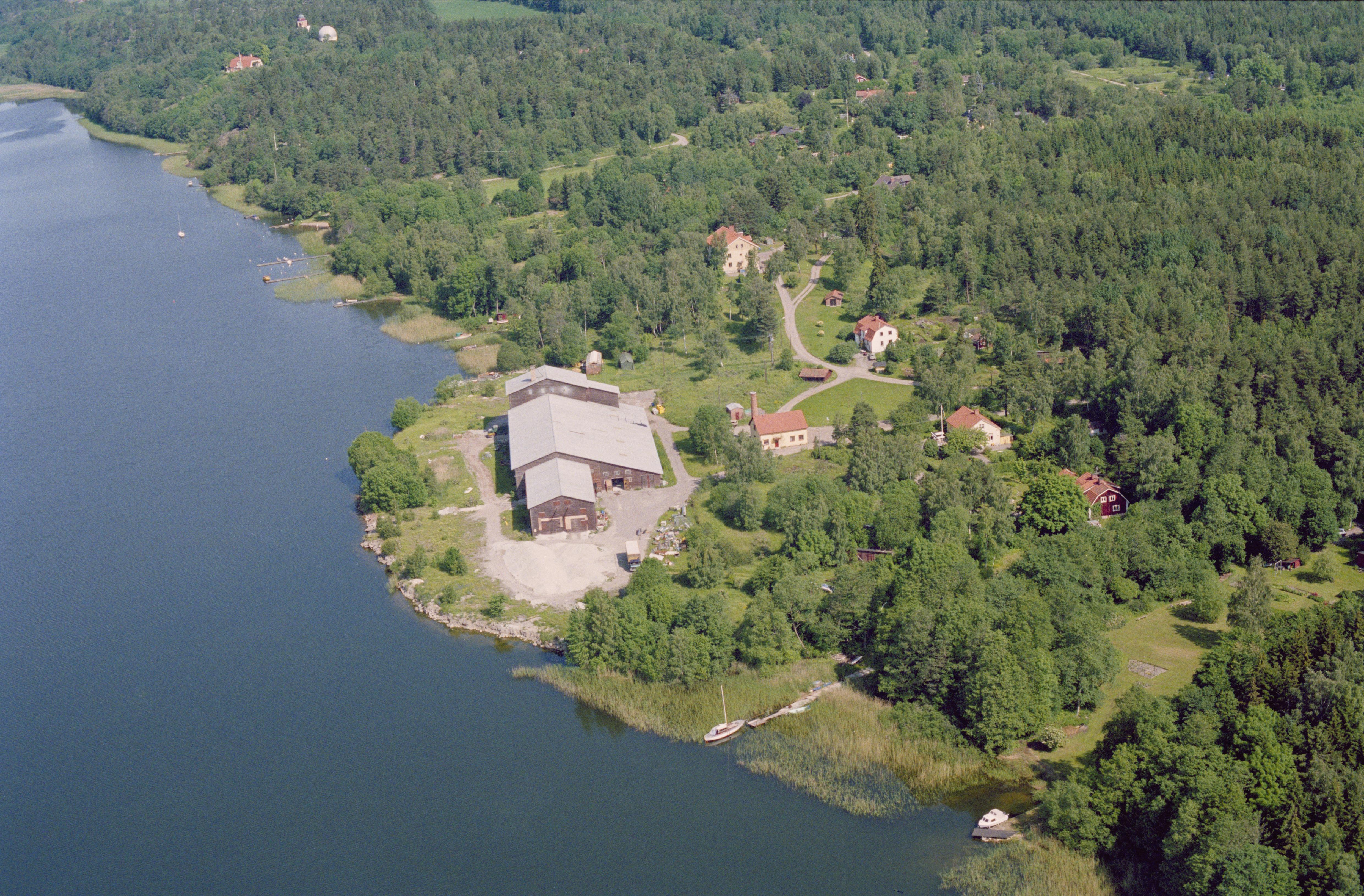 Beskrivning: Brogårds tegelbruk vid Brogårds herrgård vid Brofjärden i Mälaren. Uppe till höger Tegelbacken med husgrunder RAÄnr Bro 371. Bilden är tagen mot (väderstreck): NNV