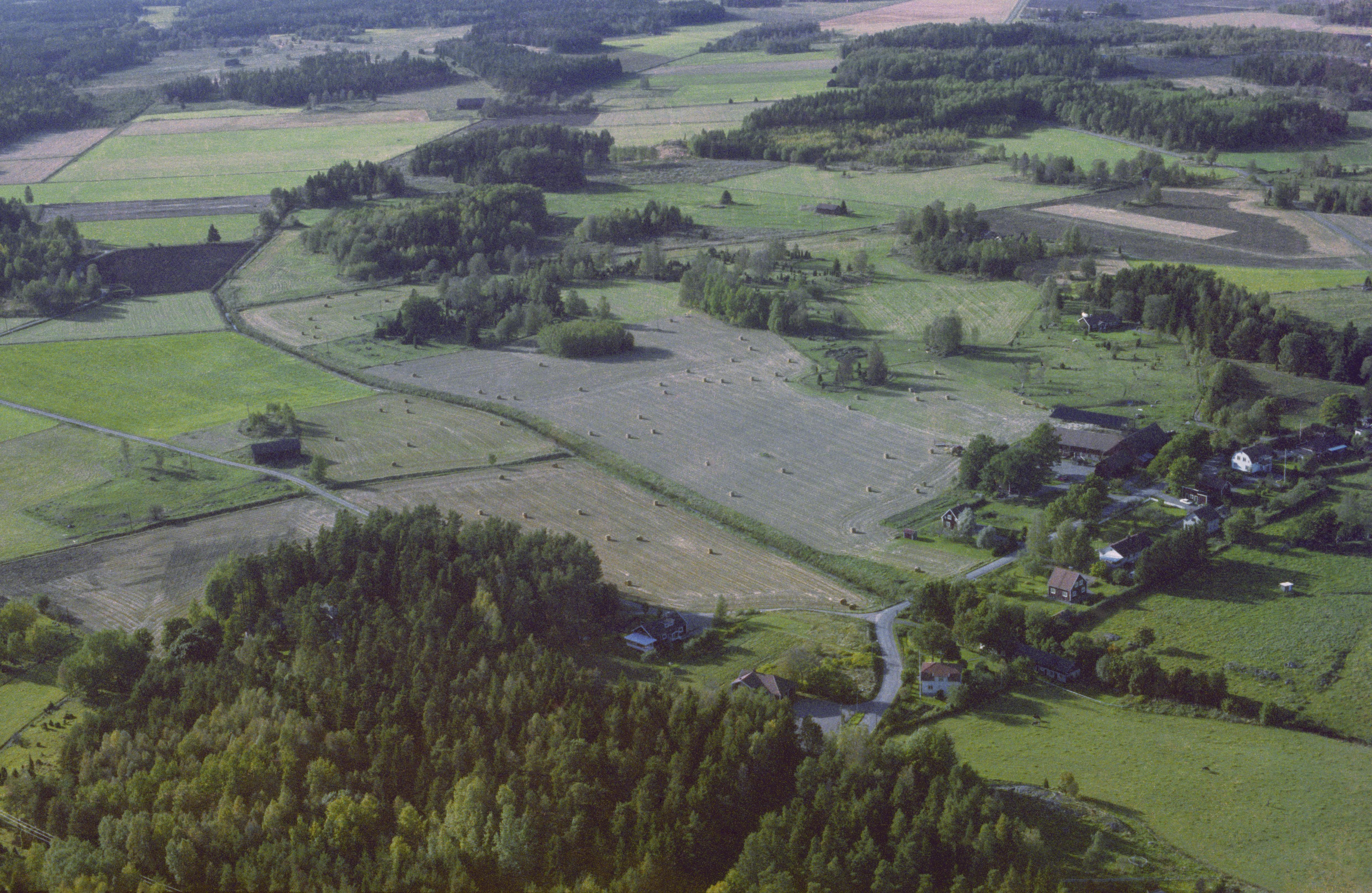 Beskrivning: Oxsätra by i Björklingeåns dalgång. Vid bildens mitt boplats RAÄnr Bälinge 259:1-2. Bilden är tagen mot (väderstreck): VNV