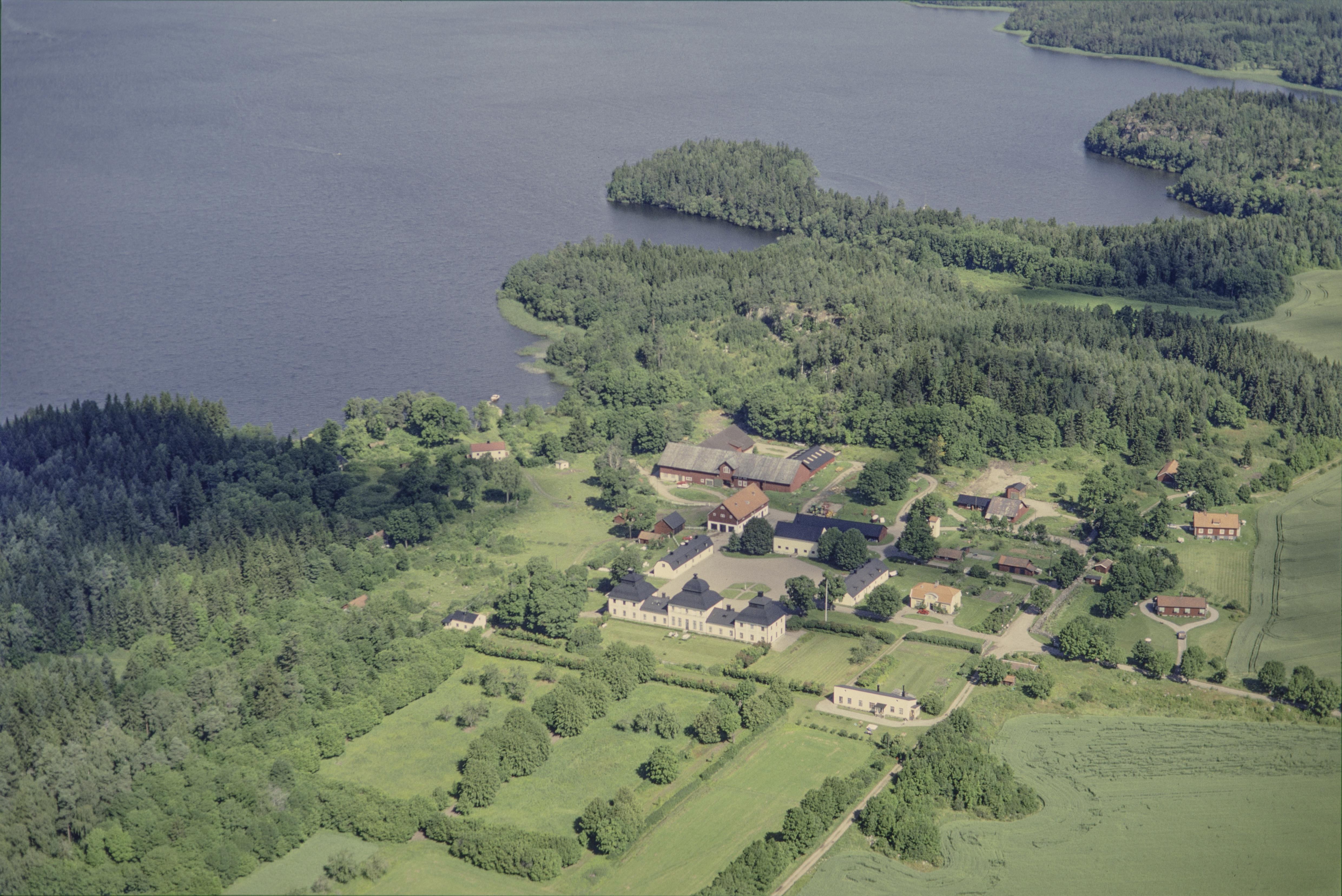 Beskrivning: Runsa herrgård. I bildens övre del Runsa fornborg / Runsa borg RAÄnr Ed 2:1 och gravfält med skeppssättning RAÄnr Ed 1:1 m.fl. Bilden är tagen mot (väderstreck): NNO