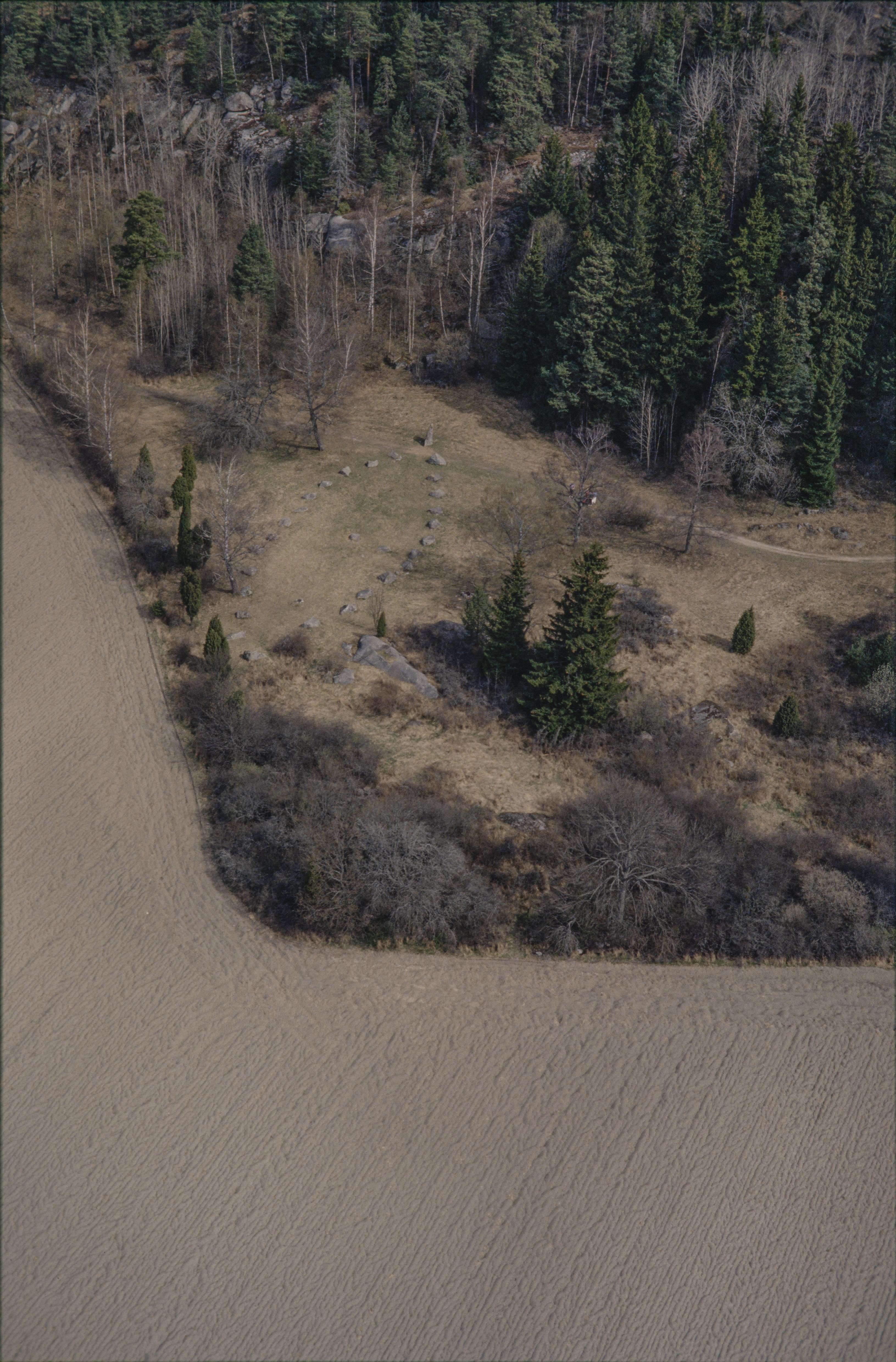 Beskrivning: Runsa gravfält med skeppssättning RAÄnr Ed 1:1. Bilden är tagen mot (väderstreck): NNO