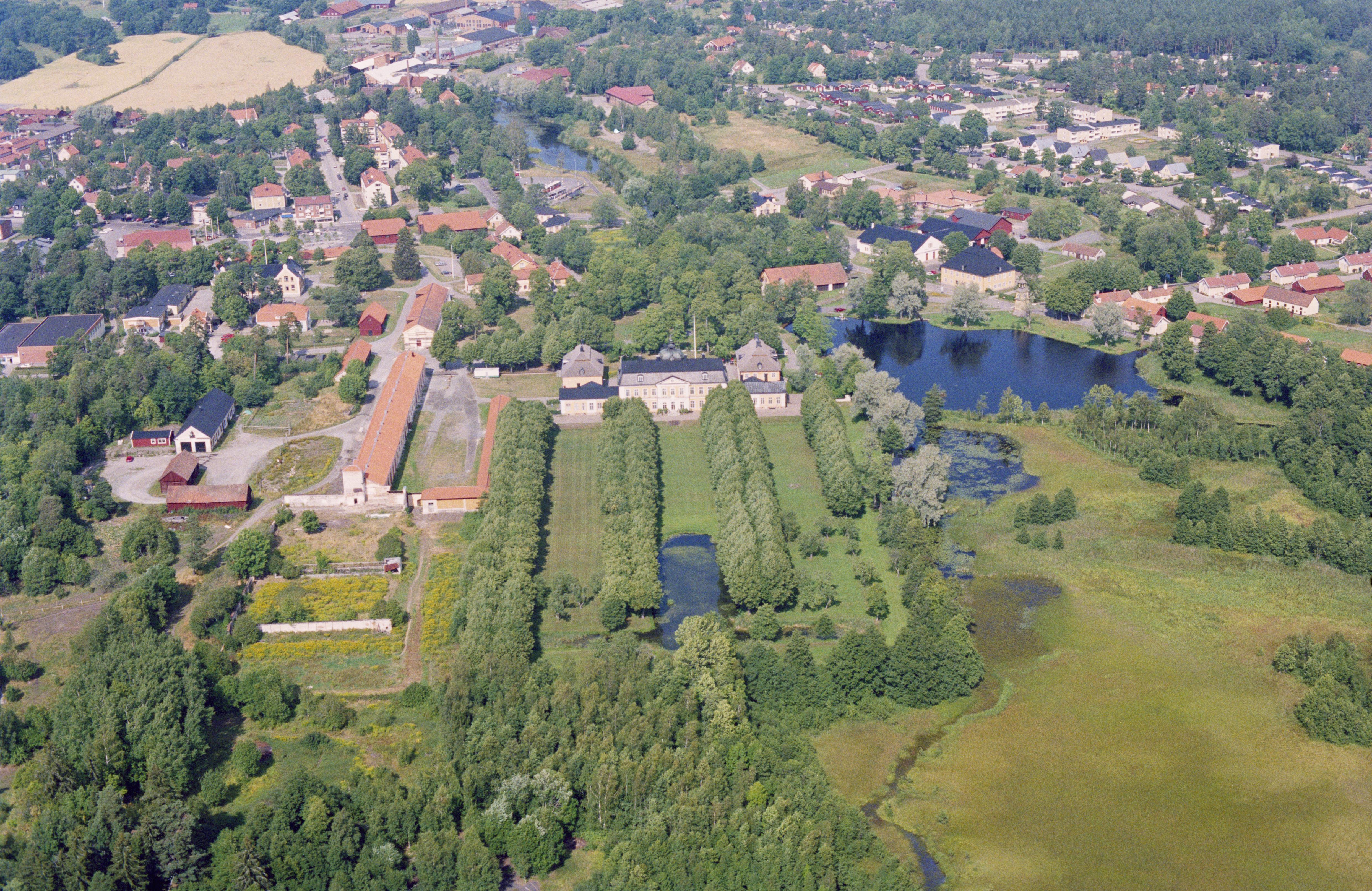 Beskrivning: Österbybruk vid Nerån och sjöarna Stordammen, Oppdammen, Sågdammen och Herrgårdsdammen. Bruksområde med herrgård och kyrka samt smedje-, kvarn-, hammar- och hyttlämningar m.m. RAÄnr Film 81:1. Bilden är tagen mot (väderstreck): N