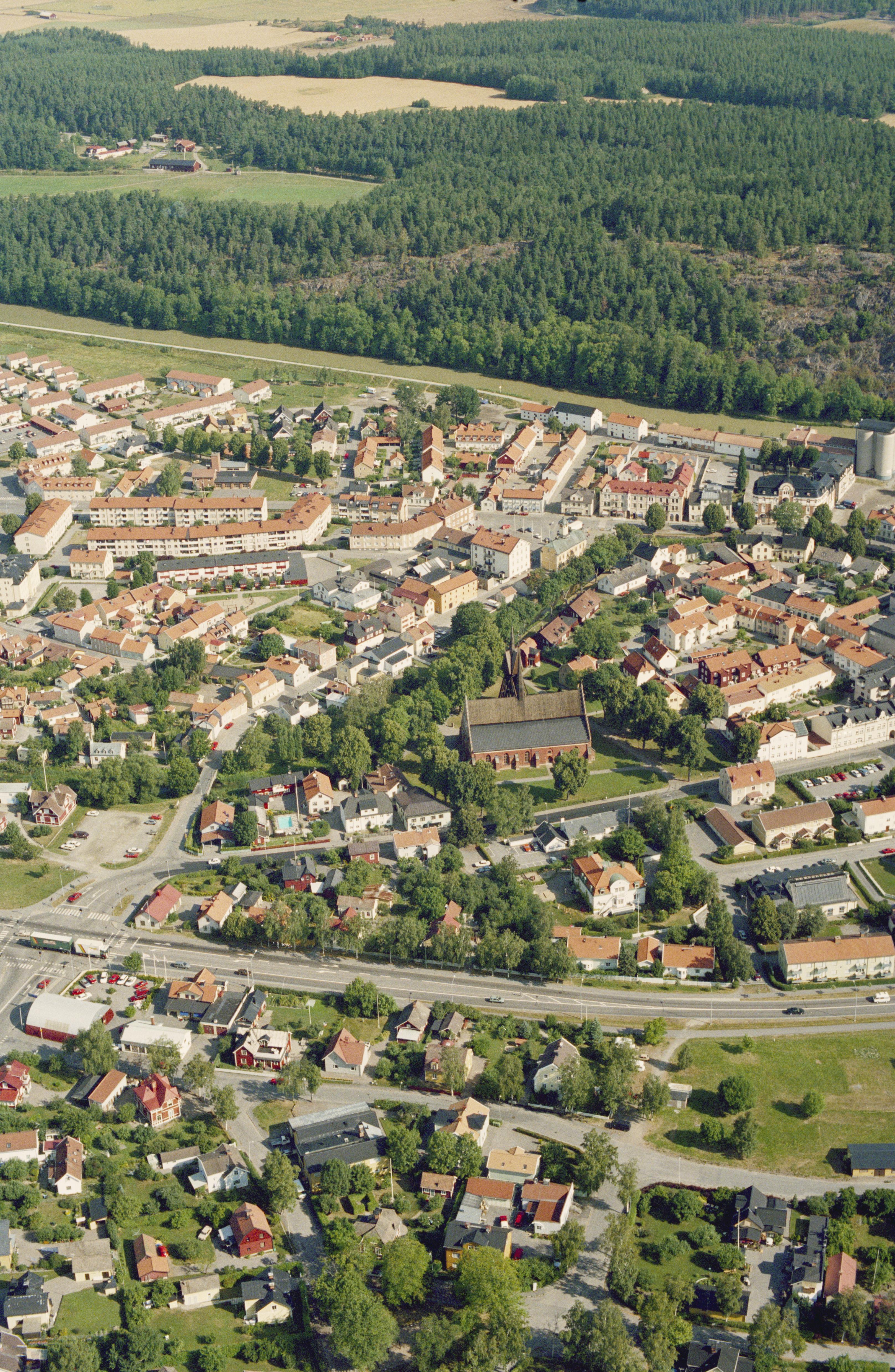 Beskrivning: Anmärkning (övrig): Riksintresse-nr/namn: E66 - Söderköping. Socken: Söderköping. Motivering: Småstad belägen vid en uppgrundad havsvik och betydelsefull vattenled, som i planmönster, dominerande kyrkobyggnader och bebyggelsekaraktär ger en bild av en av hög- och senmedeltidens viktigaste städer. - Uttryck för riksintresset: Det i stort sett oförändrade medeltida gatunätet, den äldre tomtstrukturen, kyrkorna och deras dominerande roll i stadsbilden samt medeltida profanbyggnader, källare och andra lämningar. Den förindustriella stadens småskaliga träbebyggelse med gårdar och ekonomibyggnader. Stadens siluett och kontakten med vattnet, Ramunderberget och det omgivande landskapet. - I området igår även: Söderköp(…) Texten i detta fält har förkortats vid migrering till e-arkivet. Se filbilagan extra.xml för fullständig information under note_archivist. Beskrivning: Storån i Söderköpings stad. Sankt Laurentii kyrka vid bildens mitt. Göta kanal och Ramunderberget i bildens övre del. Bilden är tagen mot (väderstreck): N Fotosyfte: Flygbildsdokumentation