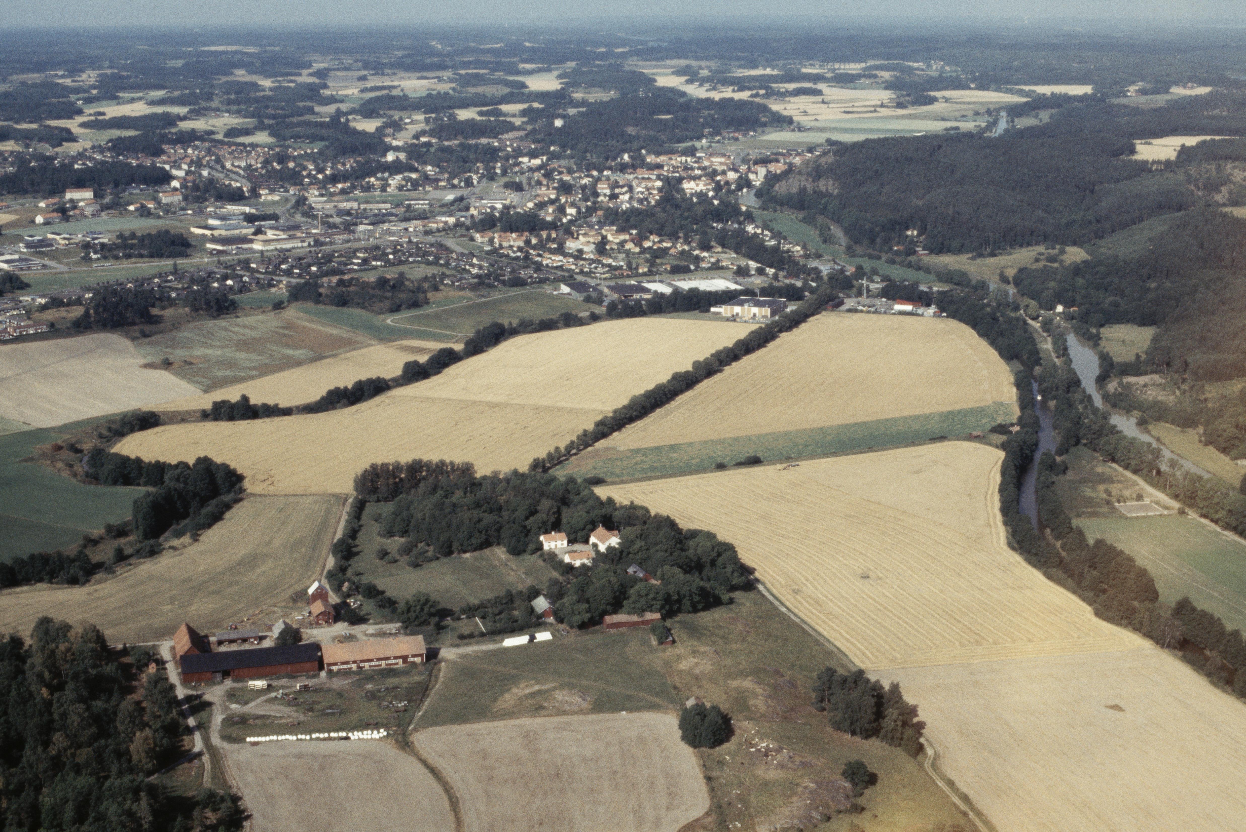 Beskrivning: Stenkrets RAÄnr Skönberga 94:1 vid Viggeby gård mellan Tvärån och till höger Göta kanal. I bildens övre del socknet och staden Söderköping. Bilden är tagen mot (väderstreck): V