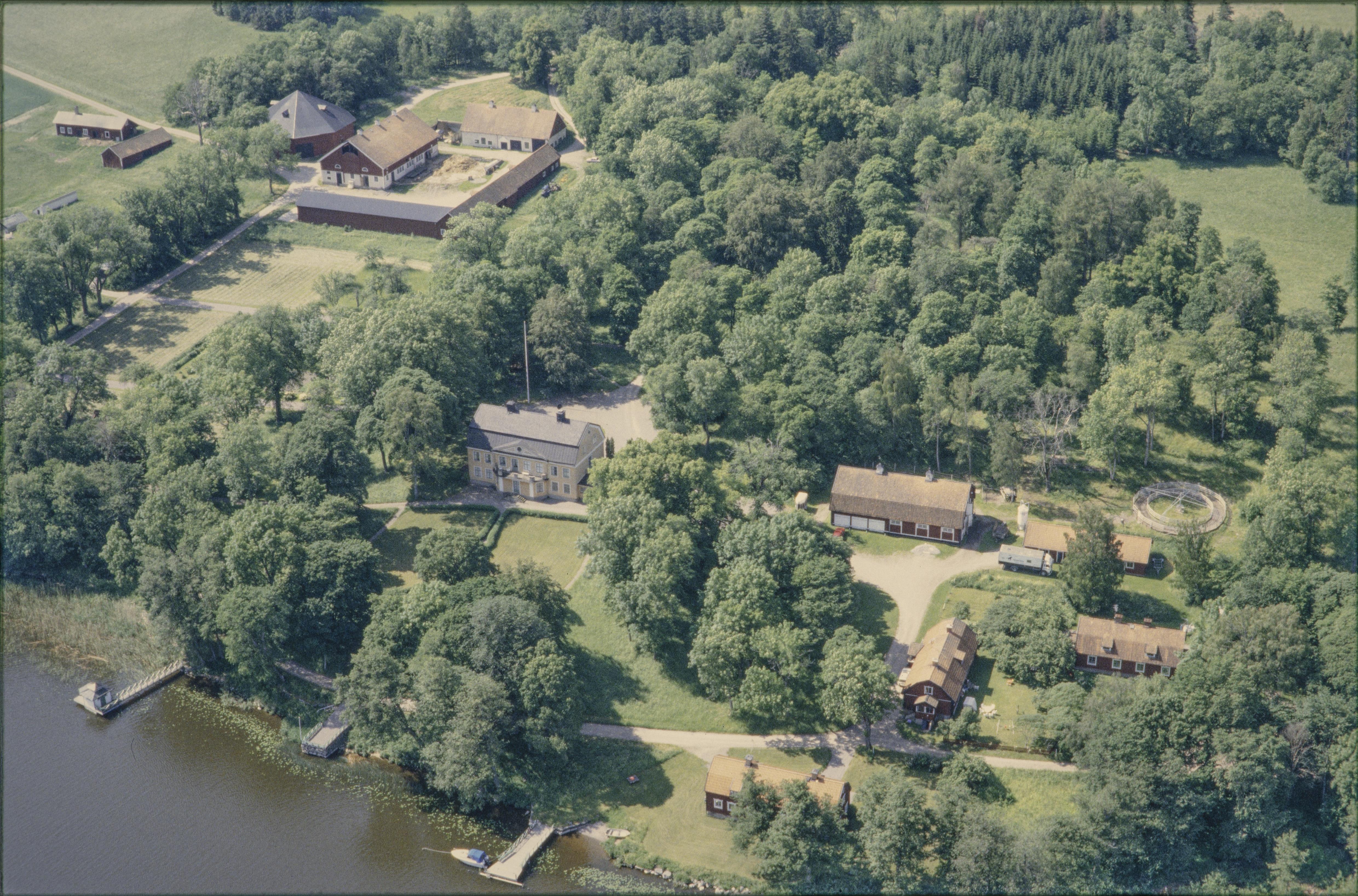Beskrivning: Signhildsbergs kungsgård vid Håtunaviken i Mälaren. I området husgrund Fornsigtuna RAÄnr Håtuna 101:1, gravfält Håtuna 99:1 m.fl. Vid bildens mitt tegelindustri Håtuna 122:1. Bilden är tagen mot (väderstreck): SSV
