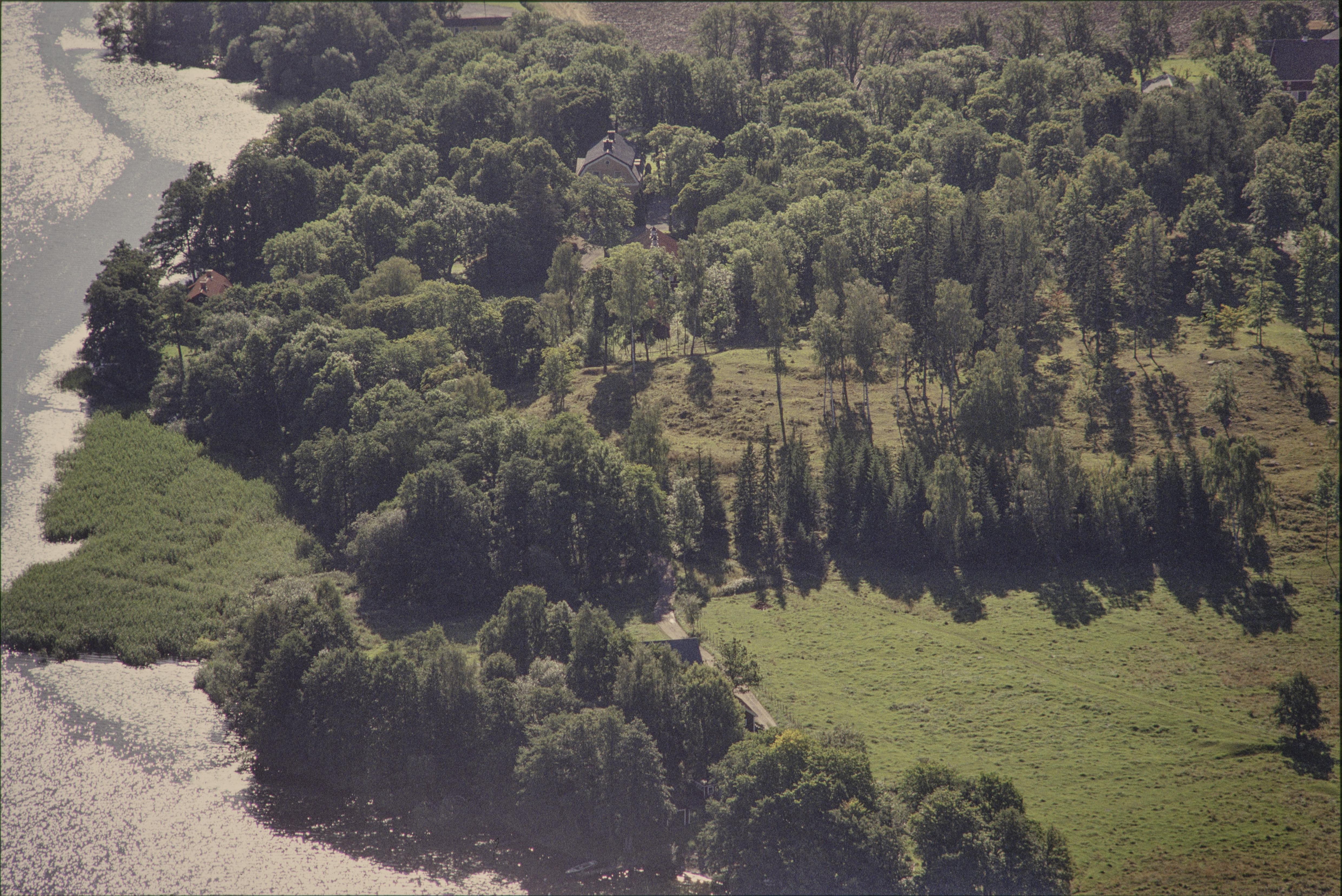 Beskrivning: Signhildsbergs kungsgård vid Håtunaviken i Mälaren. I området husgrund Fornsigtuna RAÄnr Håtuna 101:1, gravfält Håtuna 99:1 m.fl. Vid bildens mitt tegelindustri Håtuna 122:1. Bilden är tagen mot (väderstreck): SO