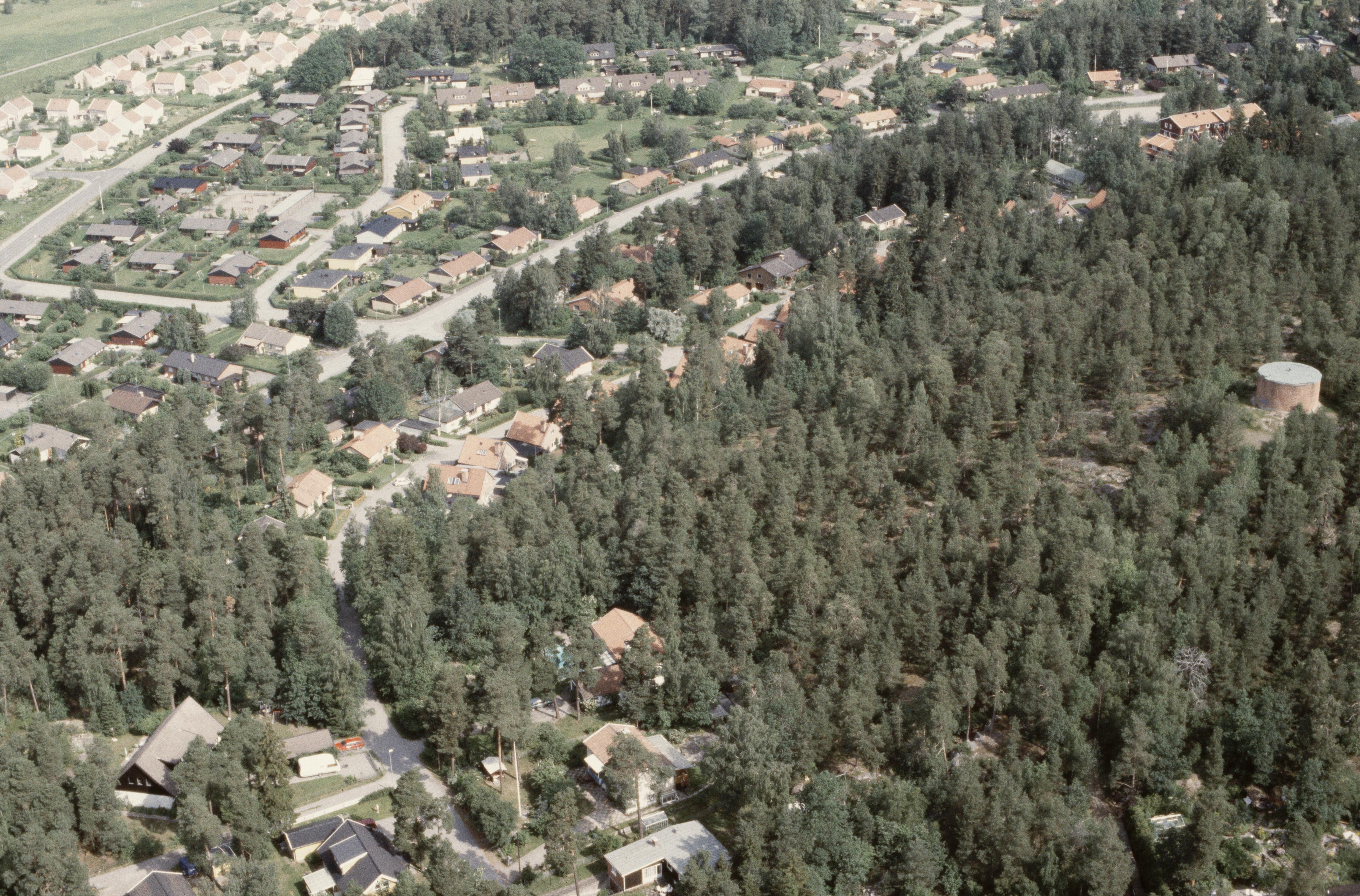 Beskrivning: Kungsängens tätort. Rankhusvägen vid bildens mitt. Bilden är tagen mot (väderstreck): NNV