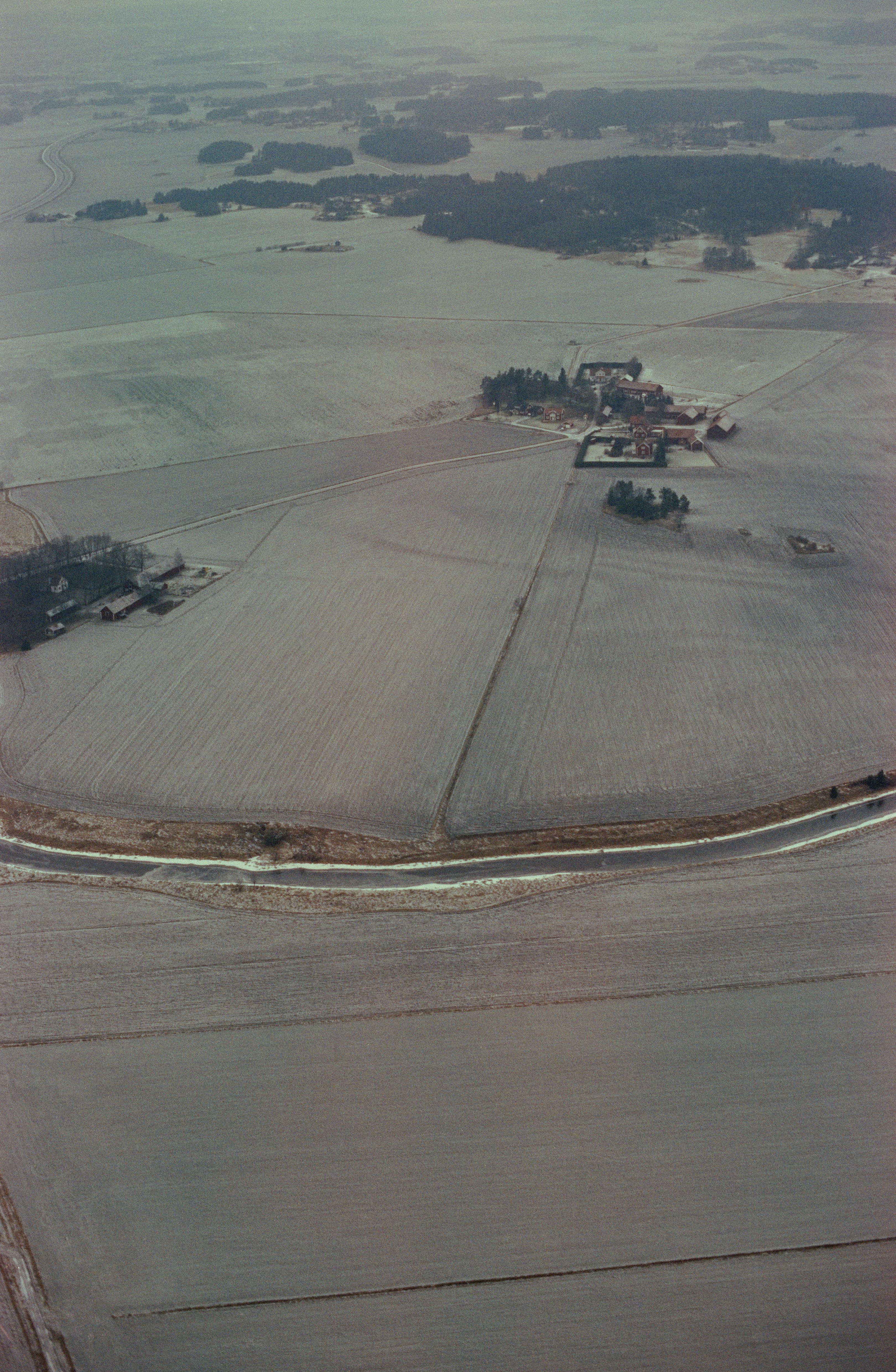 Beskrivning: Edeby gård över bildens mitt. På västsidan av gården stensättning RAÄnr Danmark 96:1. I bildens nedre del Sävjaån som till dels markerar gränsen mellan socknen Danmark (bildens vänstra och övre del) och Lagga (nere till höger). I bildens övre del gården Linnés Hammarby. Bilden är tagen mot (väderstreck): NV