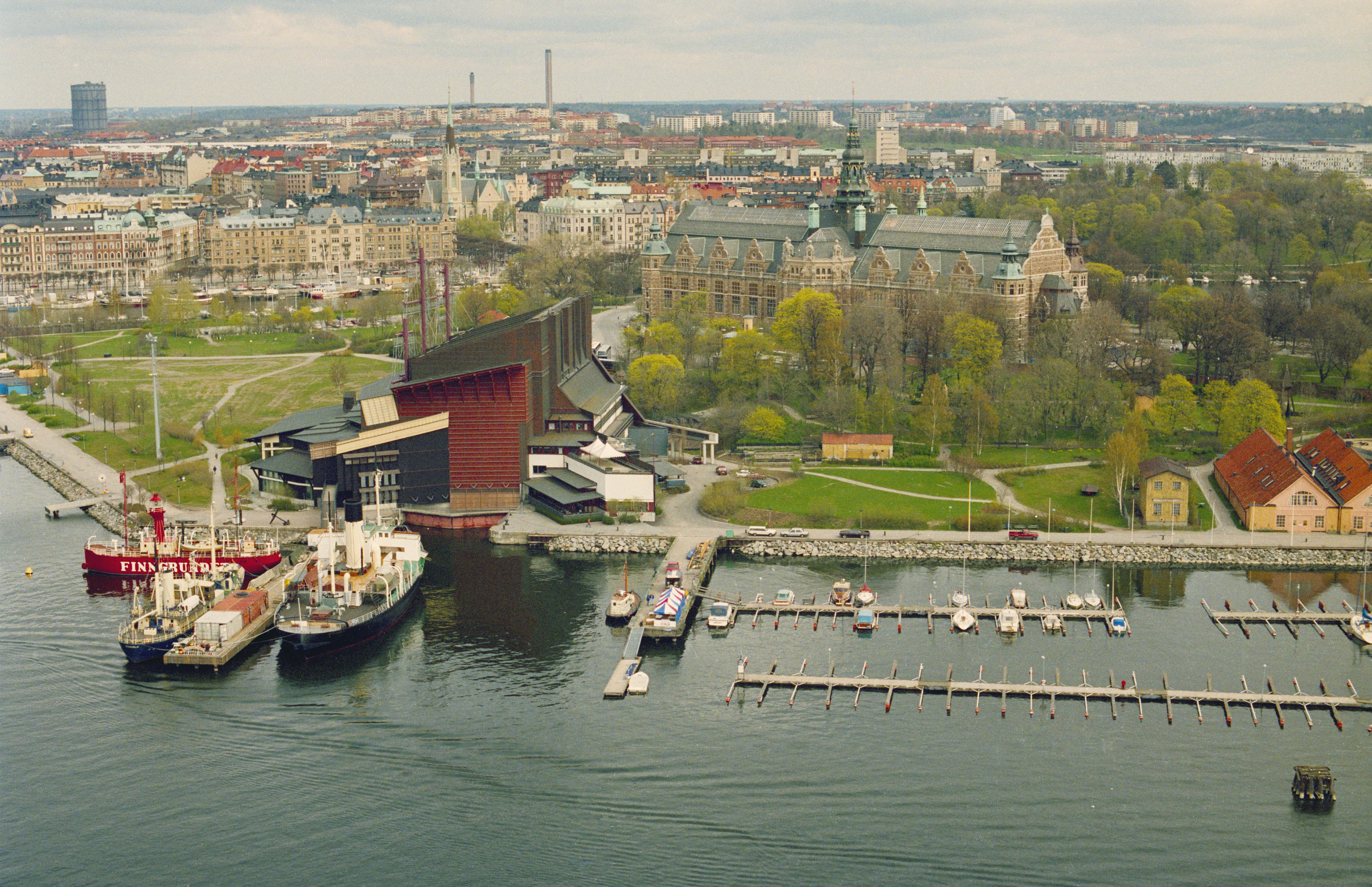 Beskrivning: Vasamuseet vid Saltsjön i bildens nedre del. Vid bildens mitt Nordiska museet - statligt byggnadsminne RAÄnr Stockholm 89:1. I bildens övre del Östermalm med Strandvägen, Oscarskyrkan vid Narvavägen, Djurgårdsbrunnsviken, m.m. Bilden är tagen mot (väderstreck): NNO