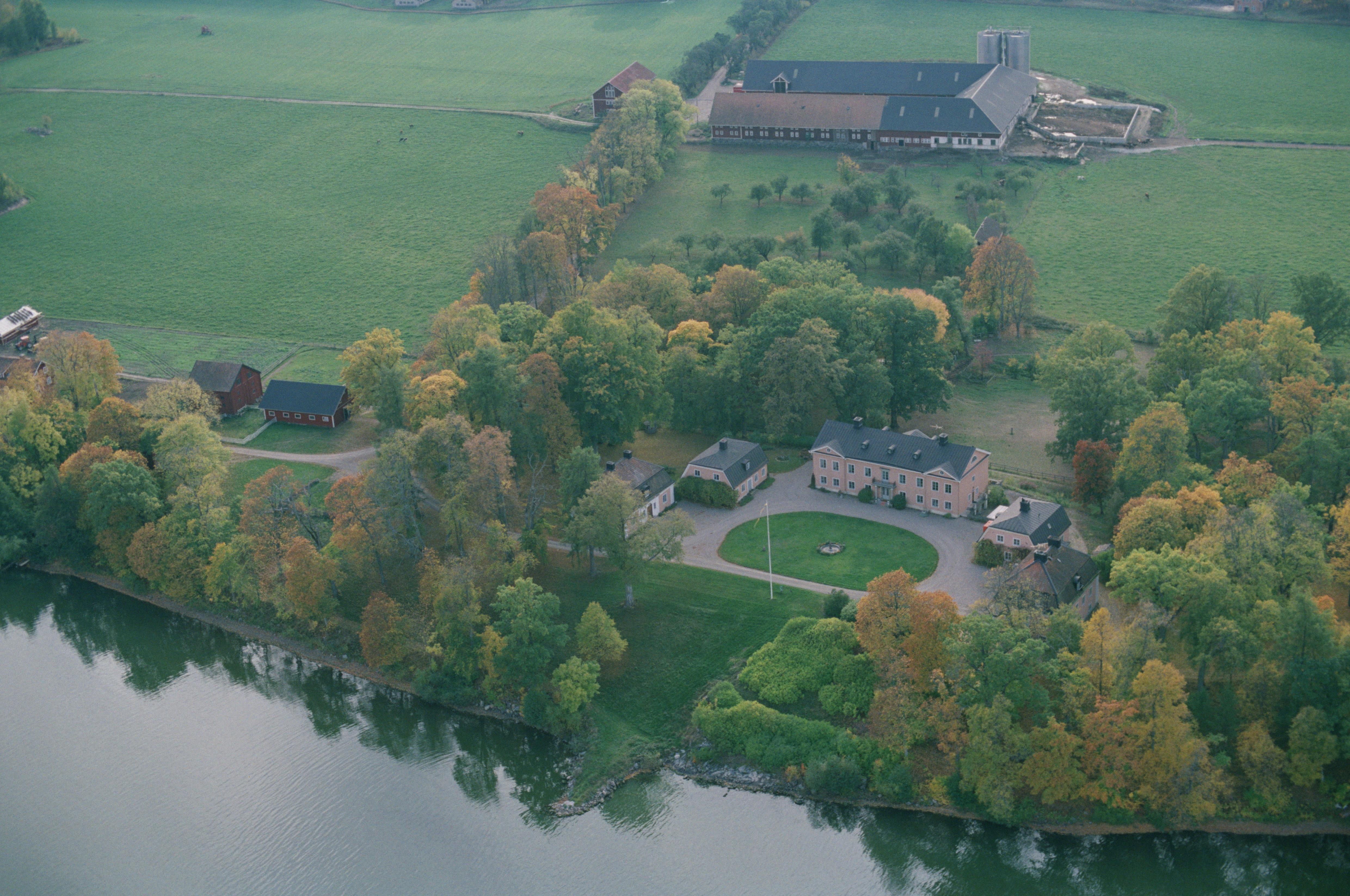 Beskrivning: Forsby herrgård i norra delen av sjön Öljaren. I bildens övre del Julita socken. Bilden är tagen mot (väderstreck): SV