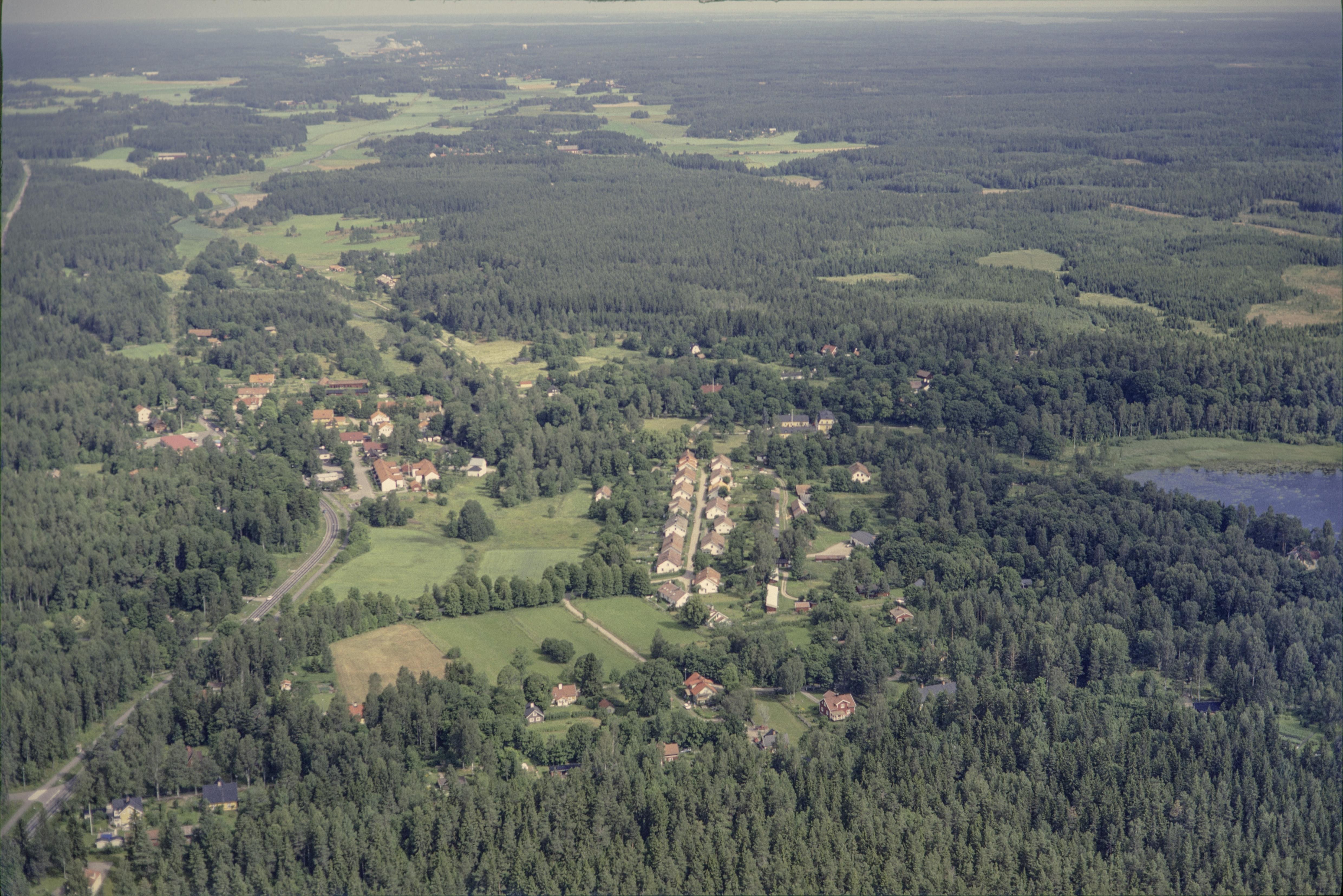 Beskrivning: Skebobruk RAÄnr Ununge 127:1 vid Skeboån och sjön Närdingen. I bildens övre del Edebo socken. Bilden är tagen mot (väderstreck): N