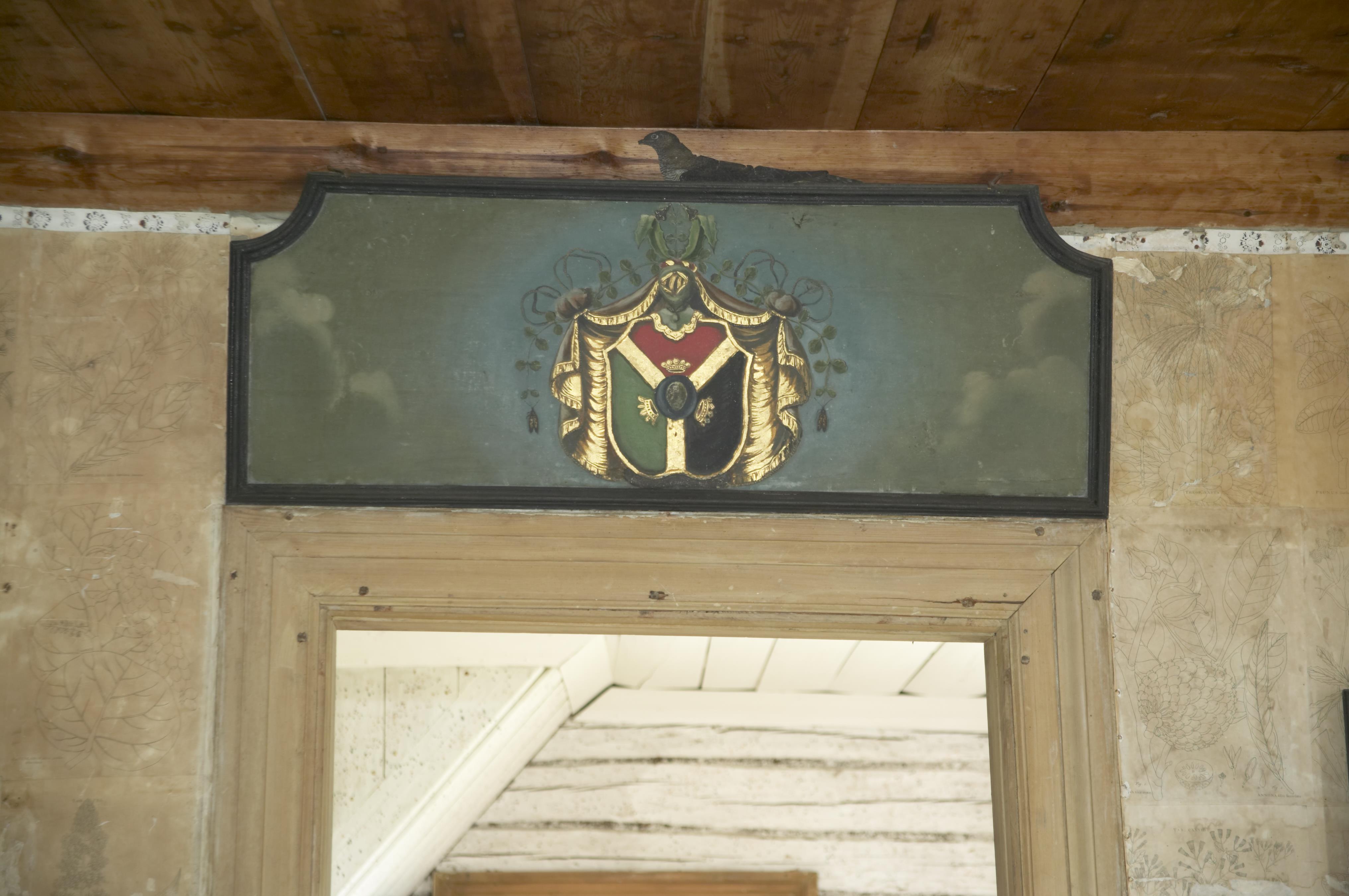 Beskrivning: Arbetsrummet, familjevapen.