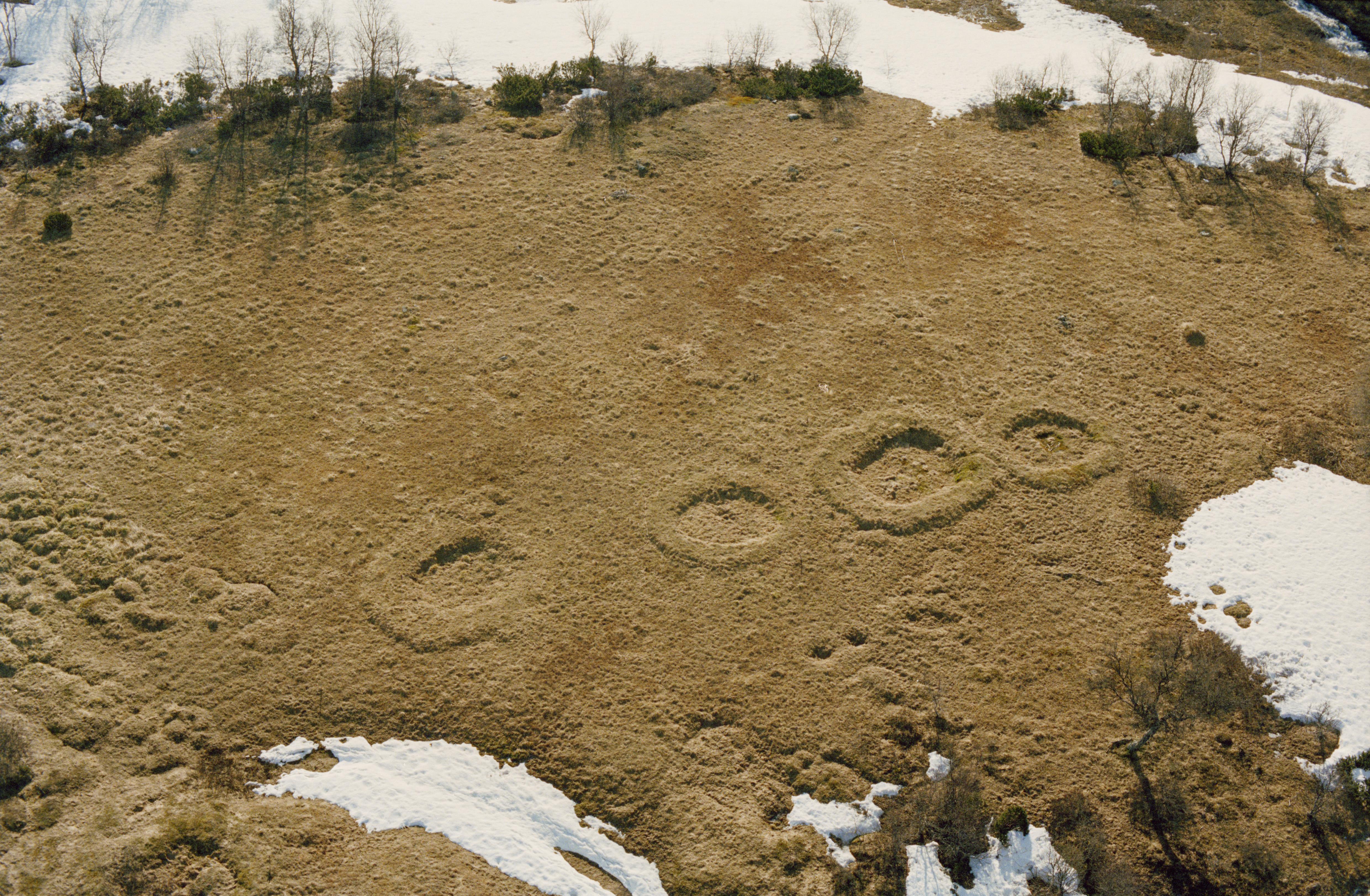 Beskrivning: Remdalen (Tjoelmenvaegkie). Stalotomter (hyddbottnar) RAÄnr Vilhelmina 14:1 i dalsidan vid bäcken Vaegkiejohke. Bilden är tagen mot (väderstreck): SO