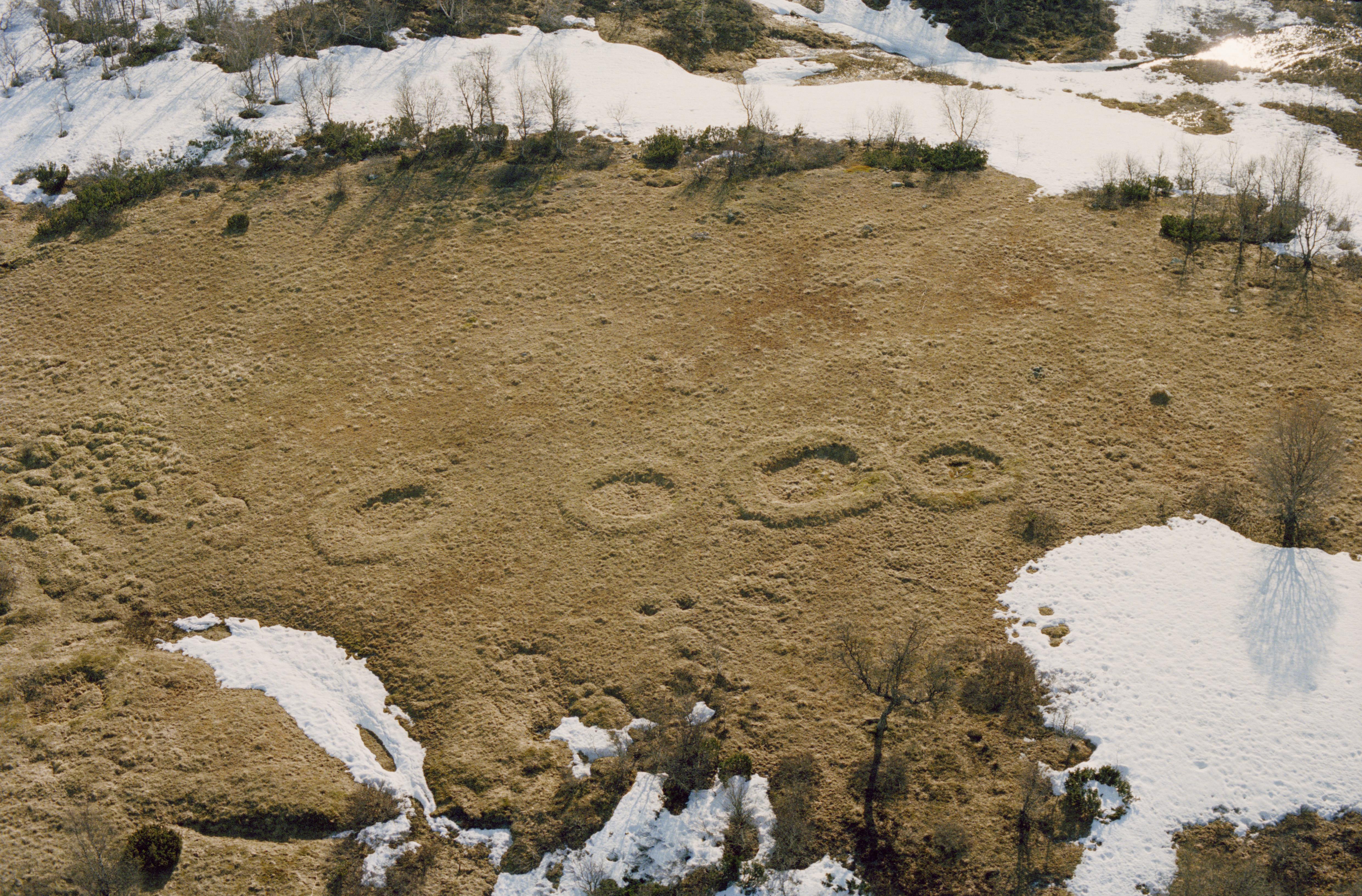 Beskrivning: Remdalen (Tjoelmenvaegkie). Stalotomter (hyddbottnar) RAÄnr Vilhelmina 14:1 i dalsidan vid bäcken Vaegkiejohke. Bilden är tagen mot (väderstreck): OSO