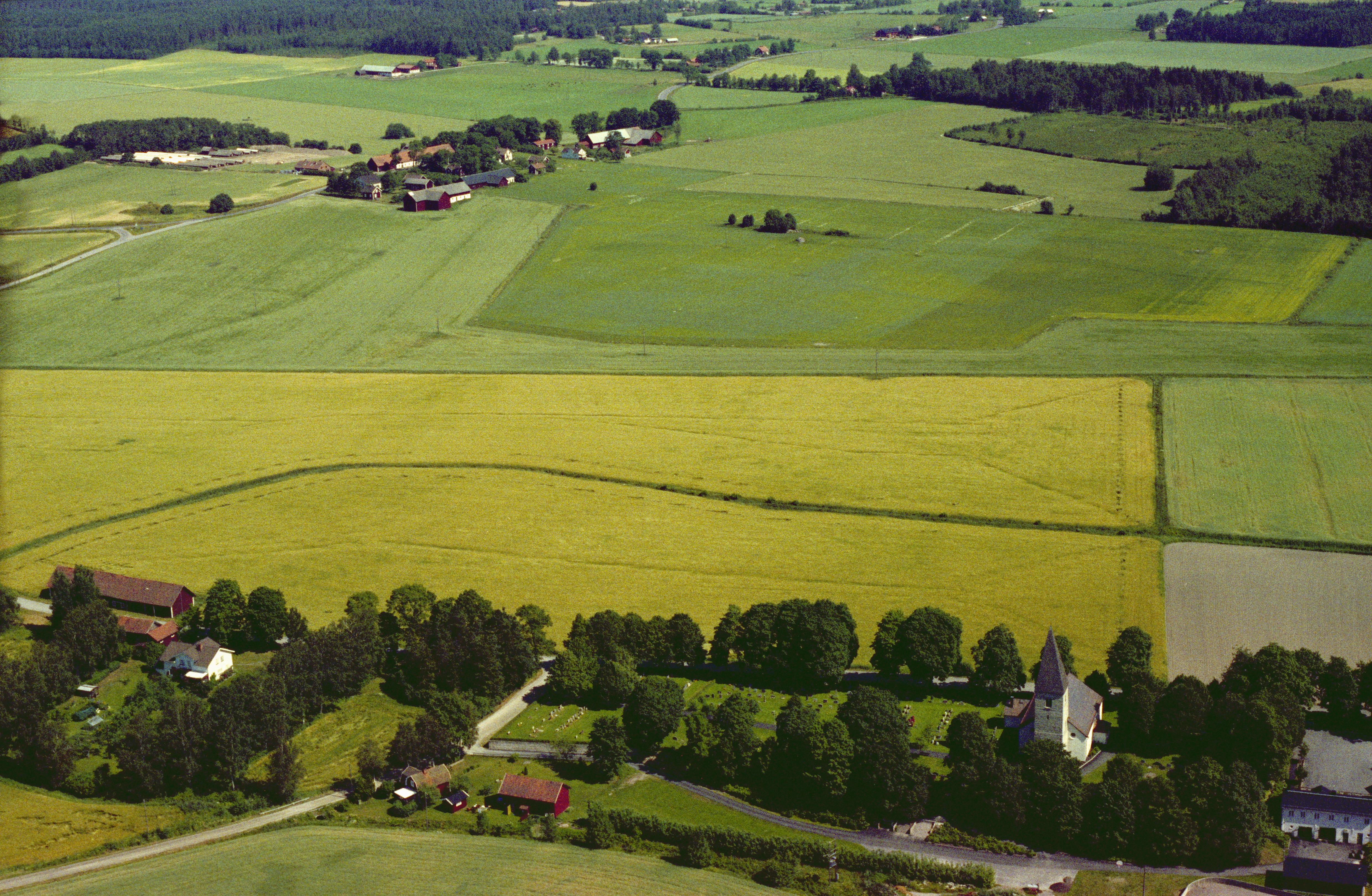 Beskrivning: Hardemo kyrka och kyrkby. Bilden är tagen mot (väderstreck): Ö