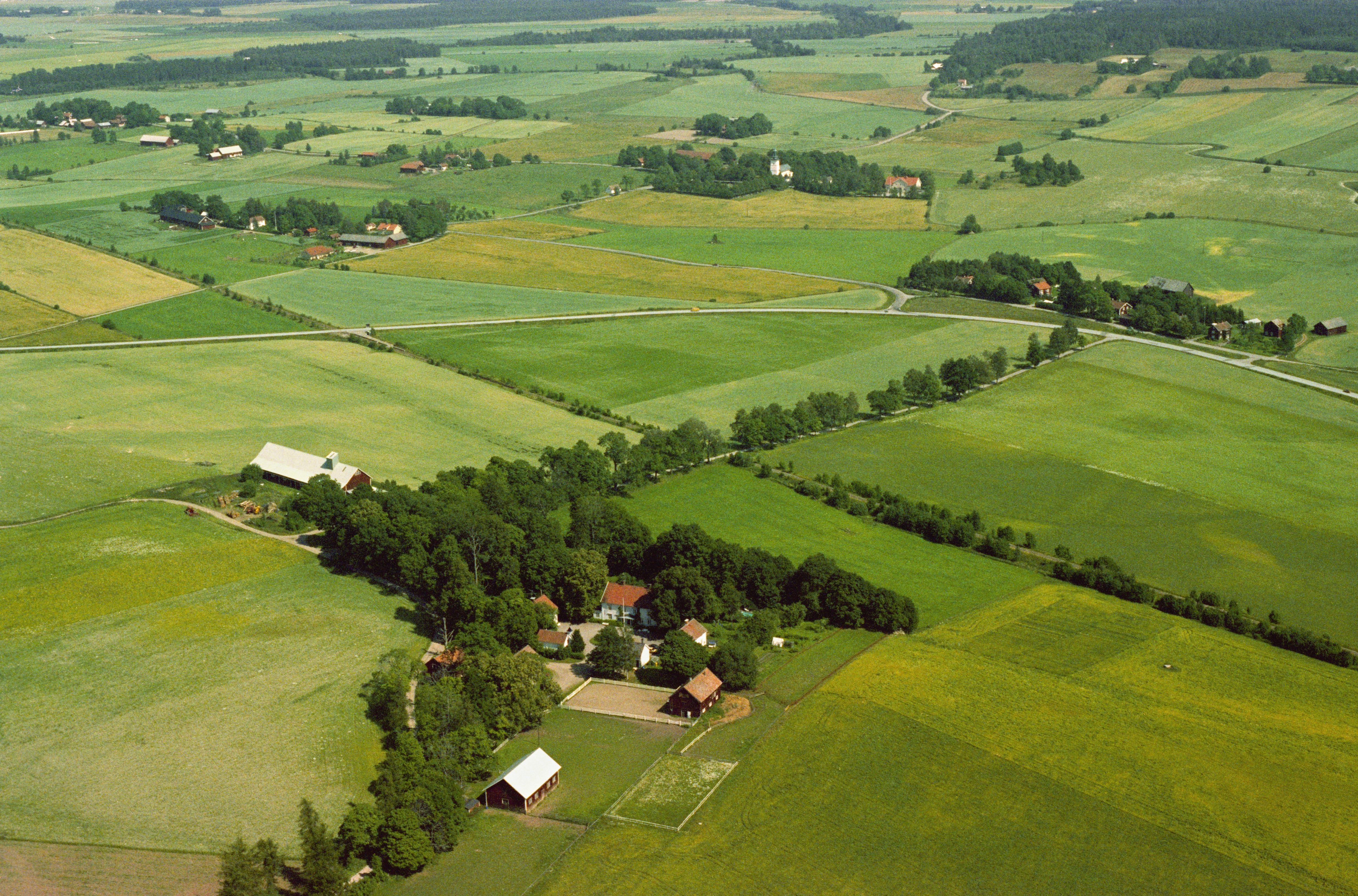 Beskrivning: Berga gård. I bildens övre del Knista kyrka. Bilden är tagen mot (väderstreck): ONO