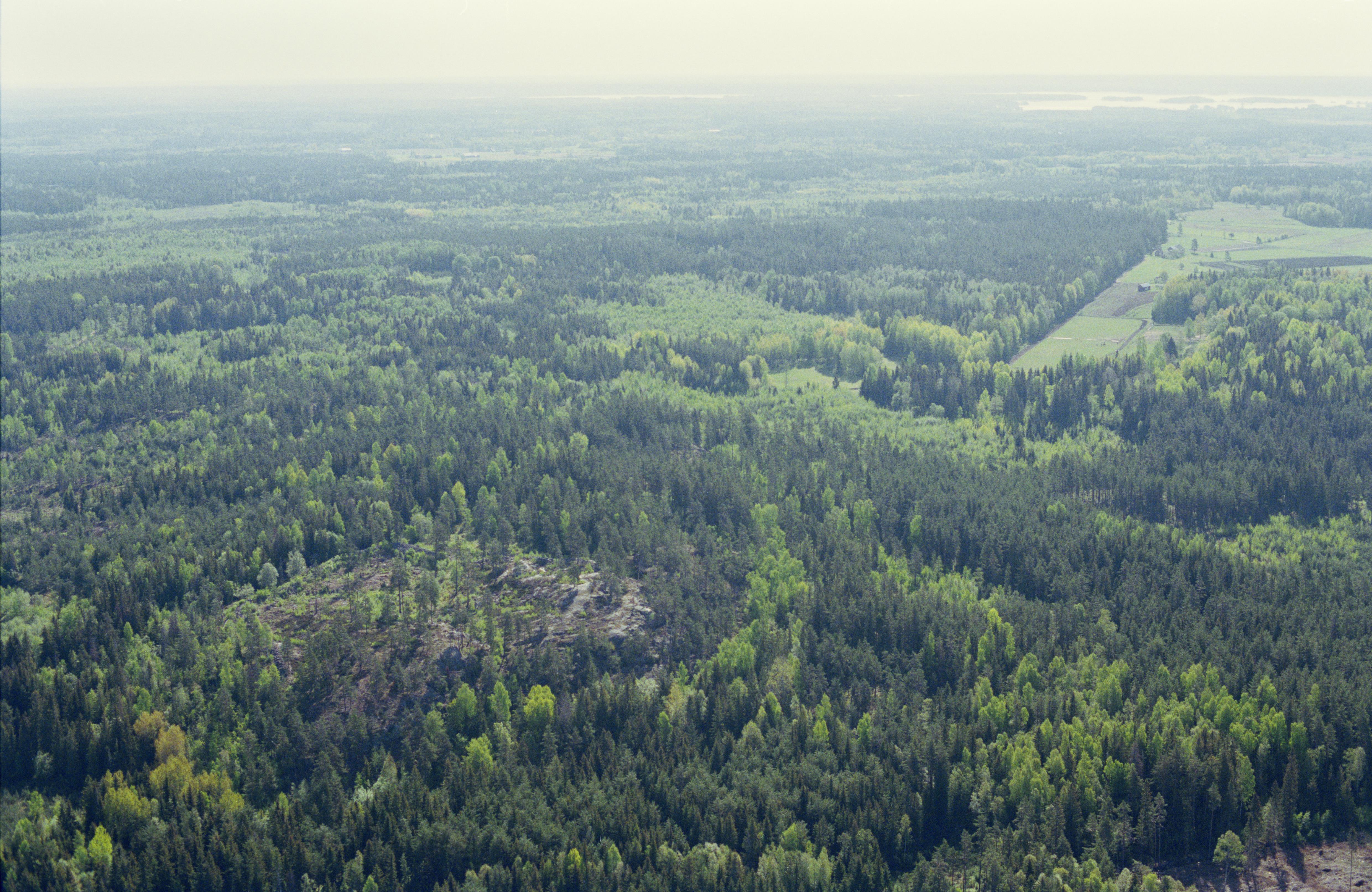 Beskrivning: Tarsta berg fornborg (skrivs även Tarstaborg) RAÄnr Sköllersta 27:1. Uppe till höger Gubbtäppan och Prästebo. Bilden är tagen mot (väderstreck): Ö