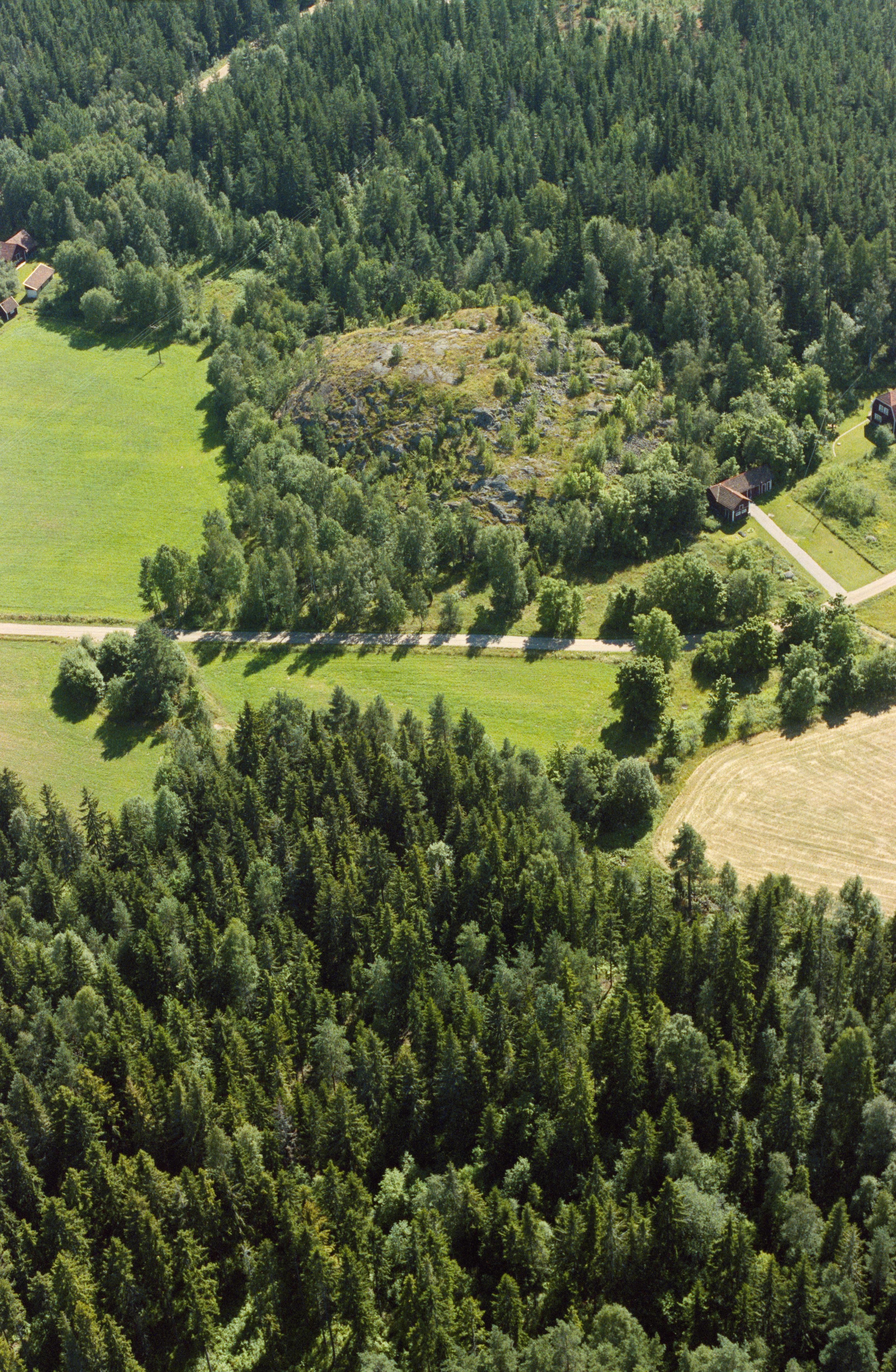 Beskrivning: Fornborg Omhällsberg (skrivs även Åmehäll, Åmehälla eller Omhällaborg) RAÄnr Sköllersta 28:1. Bilden är tagen mot (väderstreck): SSO