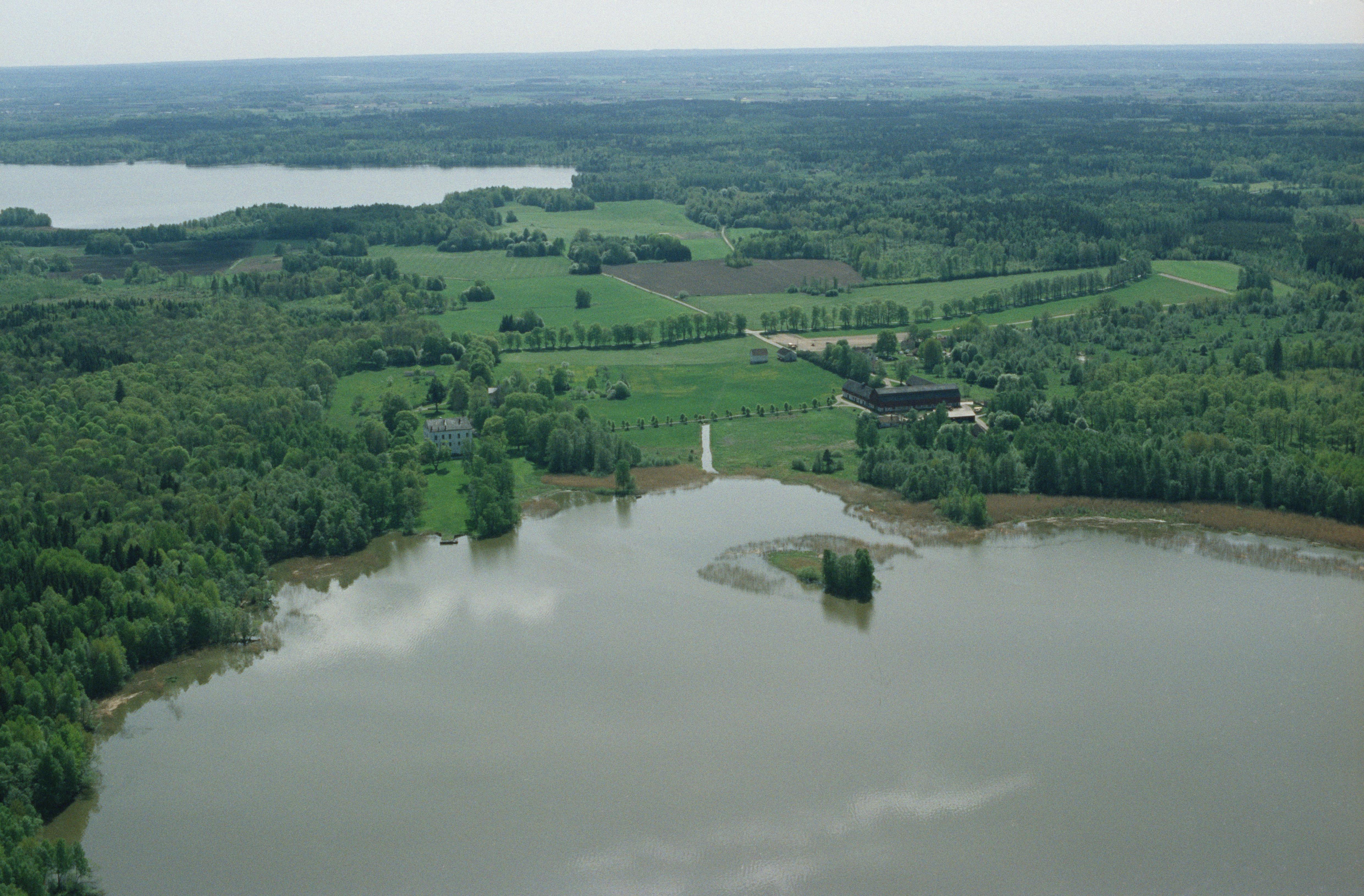 Beskrivning: Göksholms slott, byggnadsminne RAÄnr Stora Mellösa 64:1 vid Herrgårdsviken i sjön Hjälmaren. Bilden är tagen mot (väderstreck): S