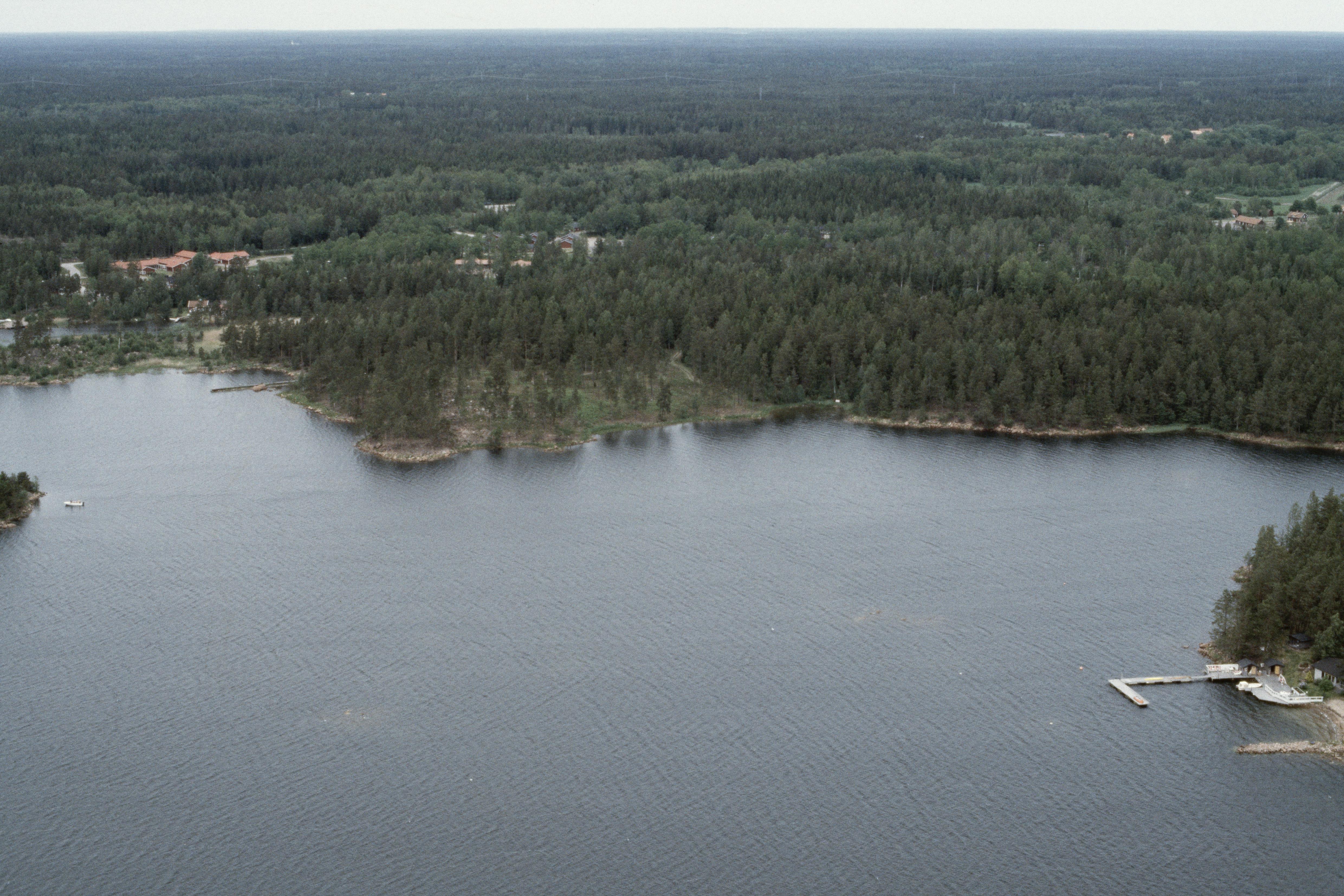 Beskrivning: Misterhults skärgård. I bildens övre del området Bredviksnäs - Fällkärret. Fornborg RAÄnr Misterhult 1250:1 på udden över bildens mitt. Bilden är tagen mot (väderstreck): NV