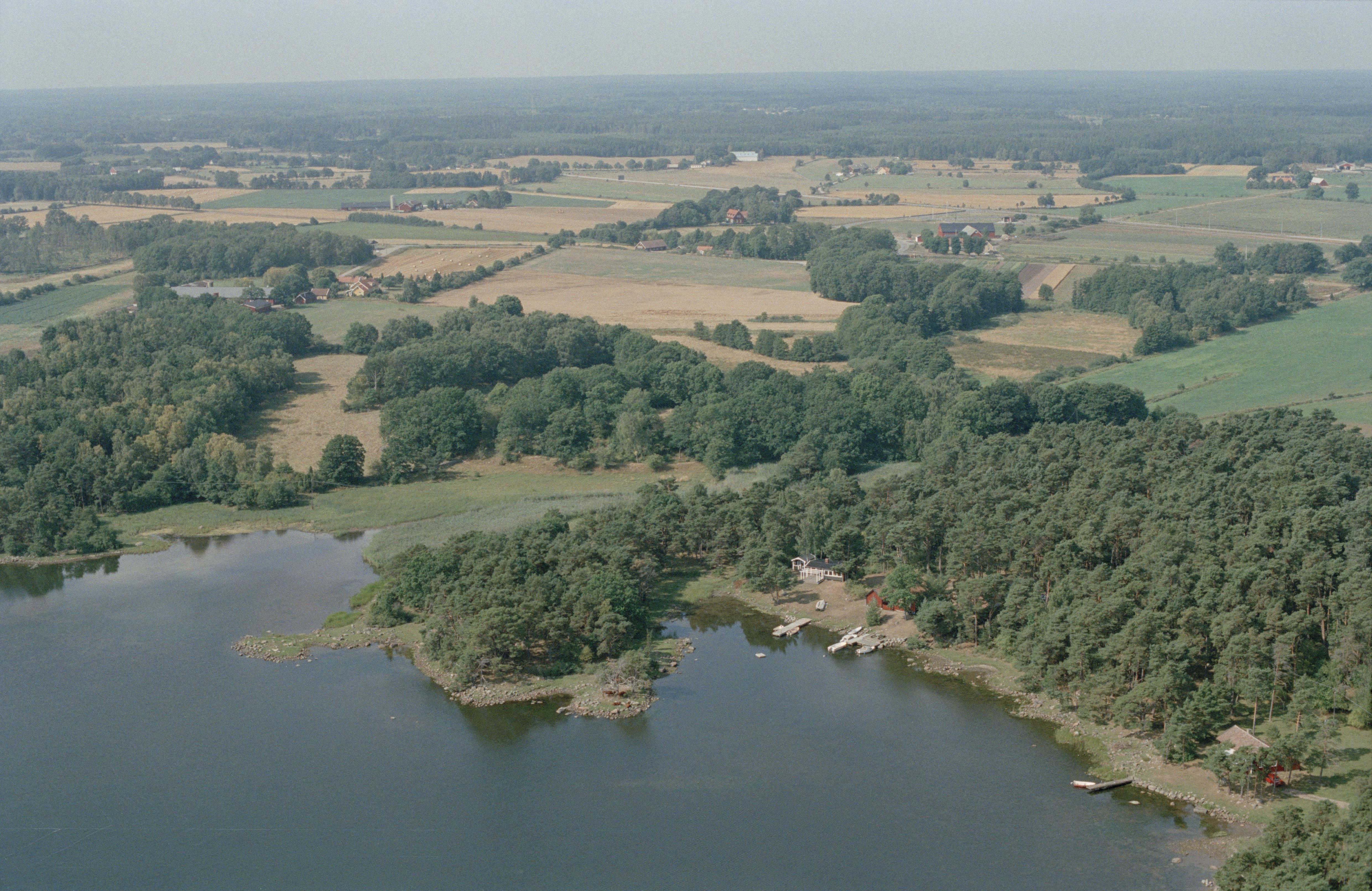 Beskrivning: Ån Brömsebäck markerar gränsen Kristianopel/Söderåkra s:nr och gränsen Småland/Blekinge. Borg Brömsehus RAÄnr Kristianopel 1:1 t.v. I bildens högra del Bröms i Söderåkra sn och Riksintressen "H39 - Bröms? och "H101 - Grisbäck". Bilden är tagen mot (väderstreck): VSV