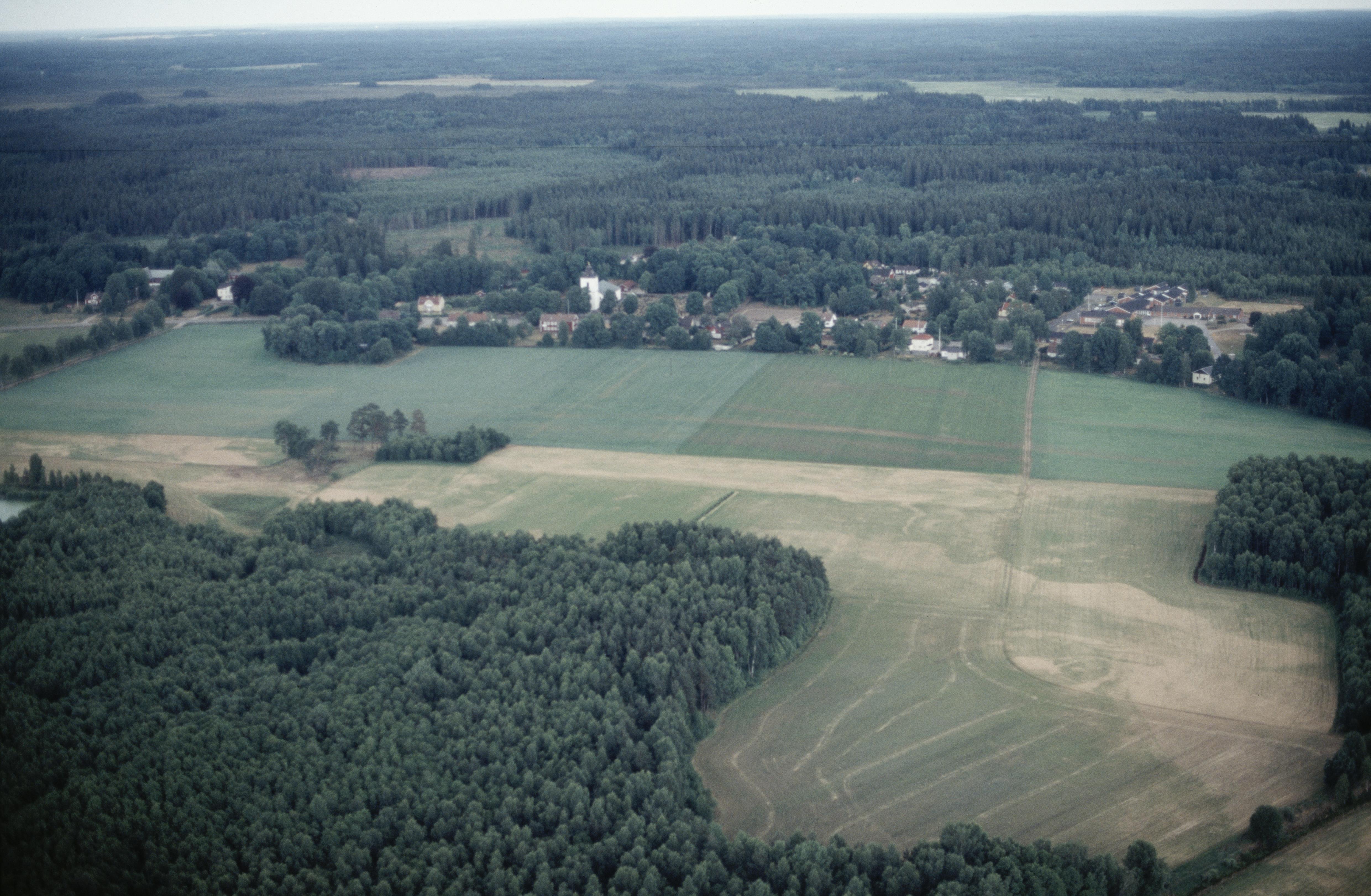 Beskrivning: Beskrivning: Virestads kyrka och kyrkby. Virestads hembygdsgård till höger om kyrkan. Bilden är tagen mot (väderstreck): ONO Fotosyfte: Flygbildsdokumentation