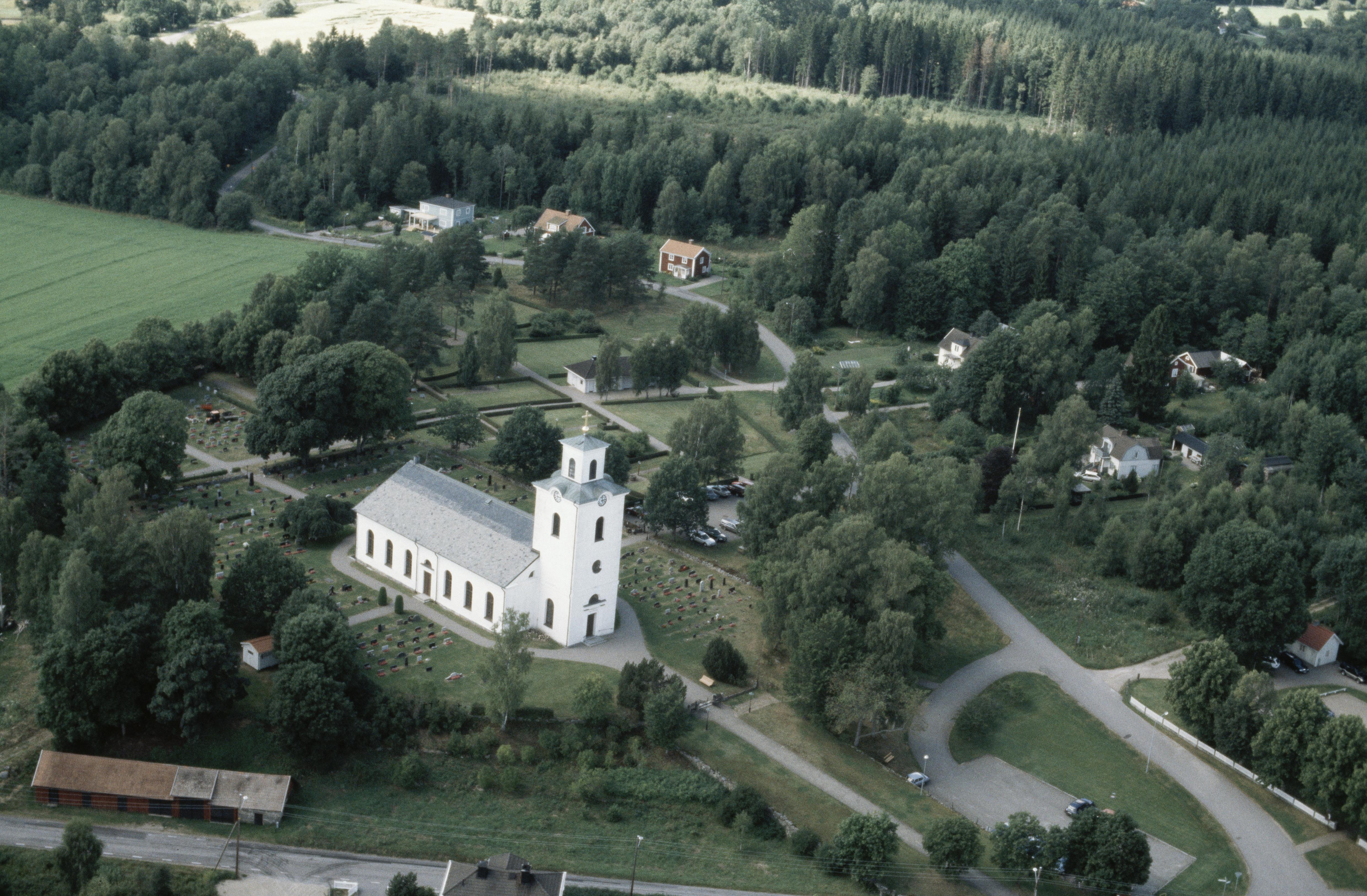 Beskrivning: Öja kyrka och kyrkby. Bilden är tagen mot (väderstreck): NV
