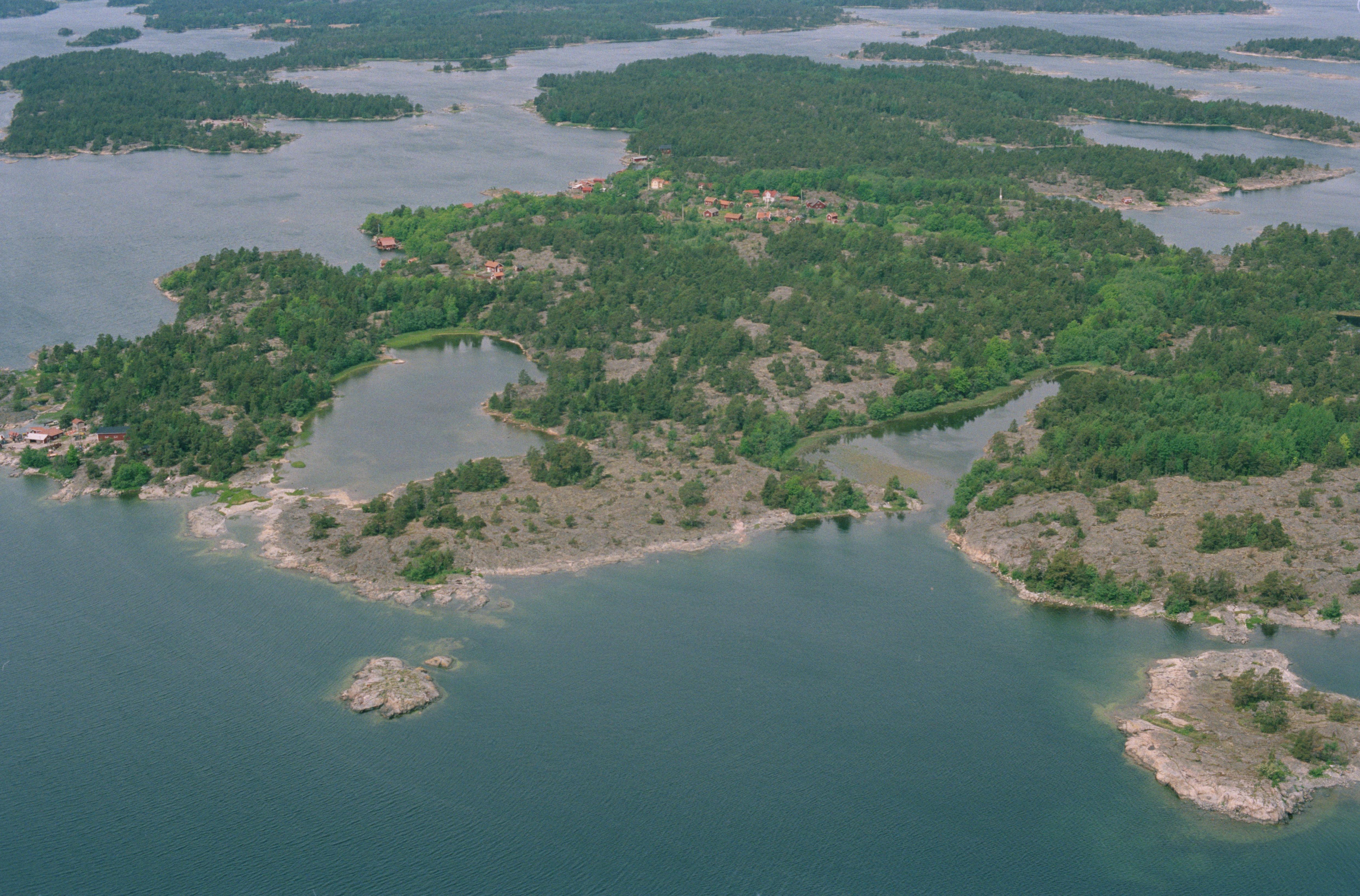 Beskrivning: Rönnklabben holme (närmast till h.), vikarna i bildens mitt är Kunghamnen (med begravningsplats RAÄnr Östra Ed 108:1) och Bredkroken på Torrös södra spets. Bilden är tagen mot (väderstreck): NV