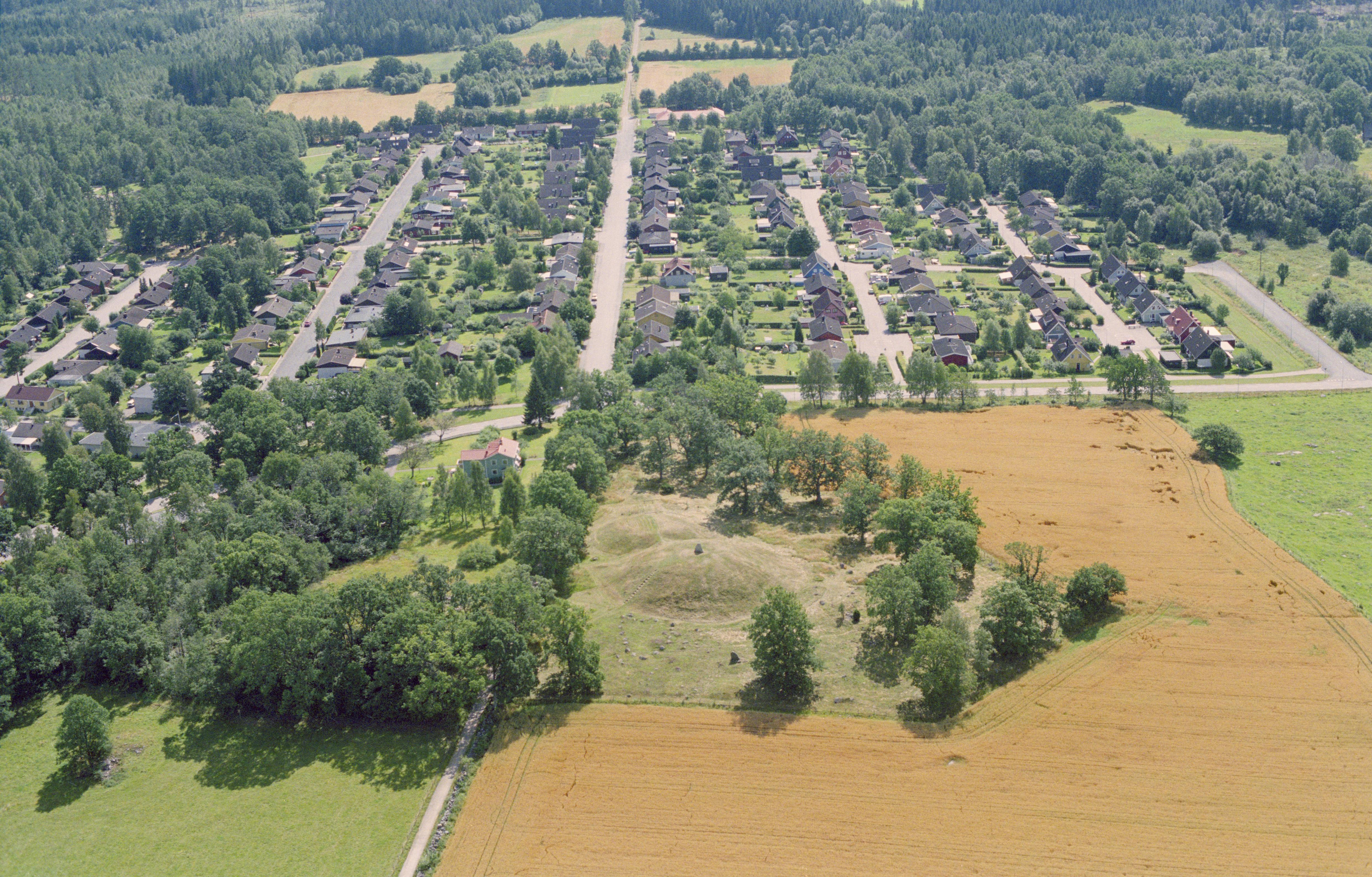 Beskrivning: Vid bildens mitt gravfält Inglingehög (skrivs även Inglinge hög) RAÄnr Östra Torsås 1:1 i västra delen av Ingelstads tätort. Bilden är tagen mot (väderstreck): S