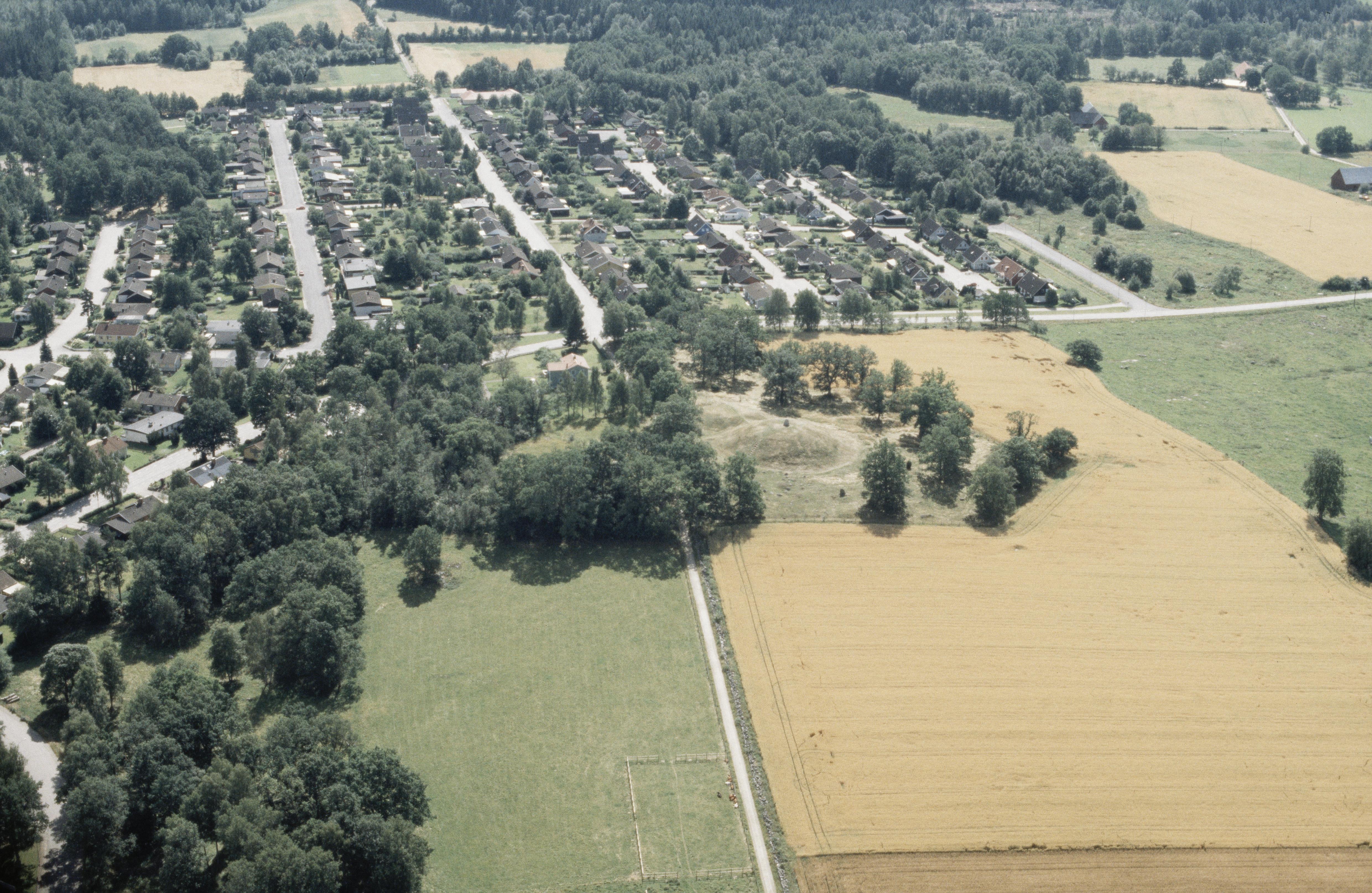 Beskrivning: Vid bildens mitt gravfält Inglingehög (skrivs även Inglinge hög) RAÄnr Östra Torsås 1:1 i västra delen av Ingelstads tätort. Bilden är tagen mot (väderstreck): S