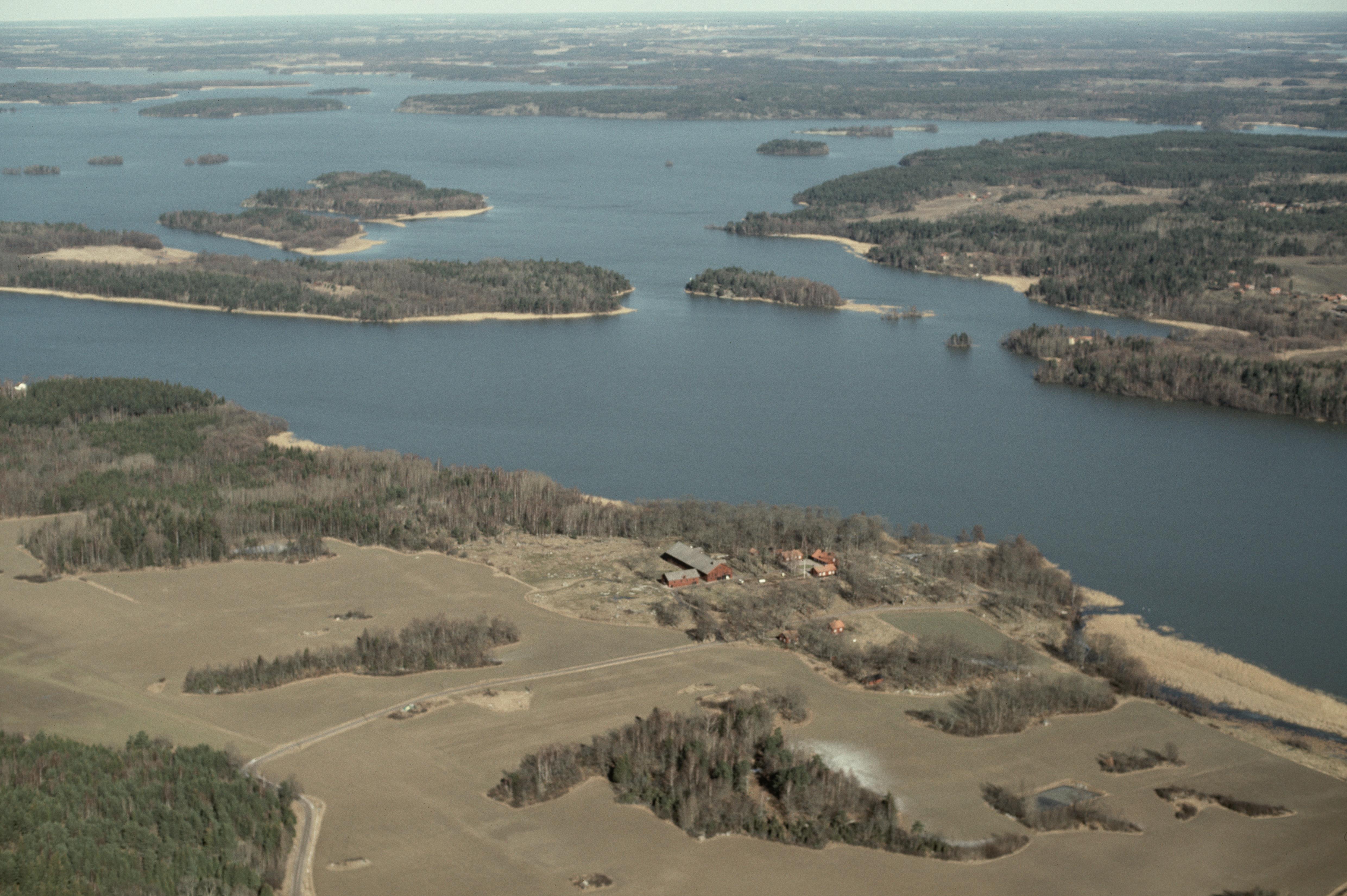 Beskrivning: Vårfruberga kloster (ruin) RAÄnr Fogdö 30:1 och Kungsbergs herrgård / kungsgård Fogdö 230:1. Fornlämningsområde på Fogdön vid Strängnäsfjärden i Mälaren. Till höger i bildens övre del Aspö socken. Bilden är tagen mot (väderstreck): NNO
