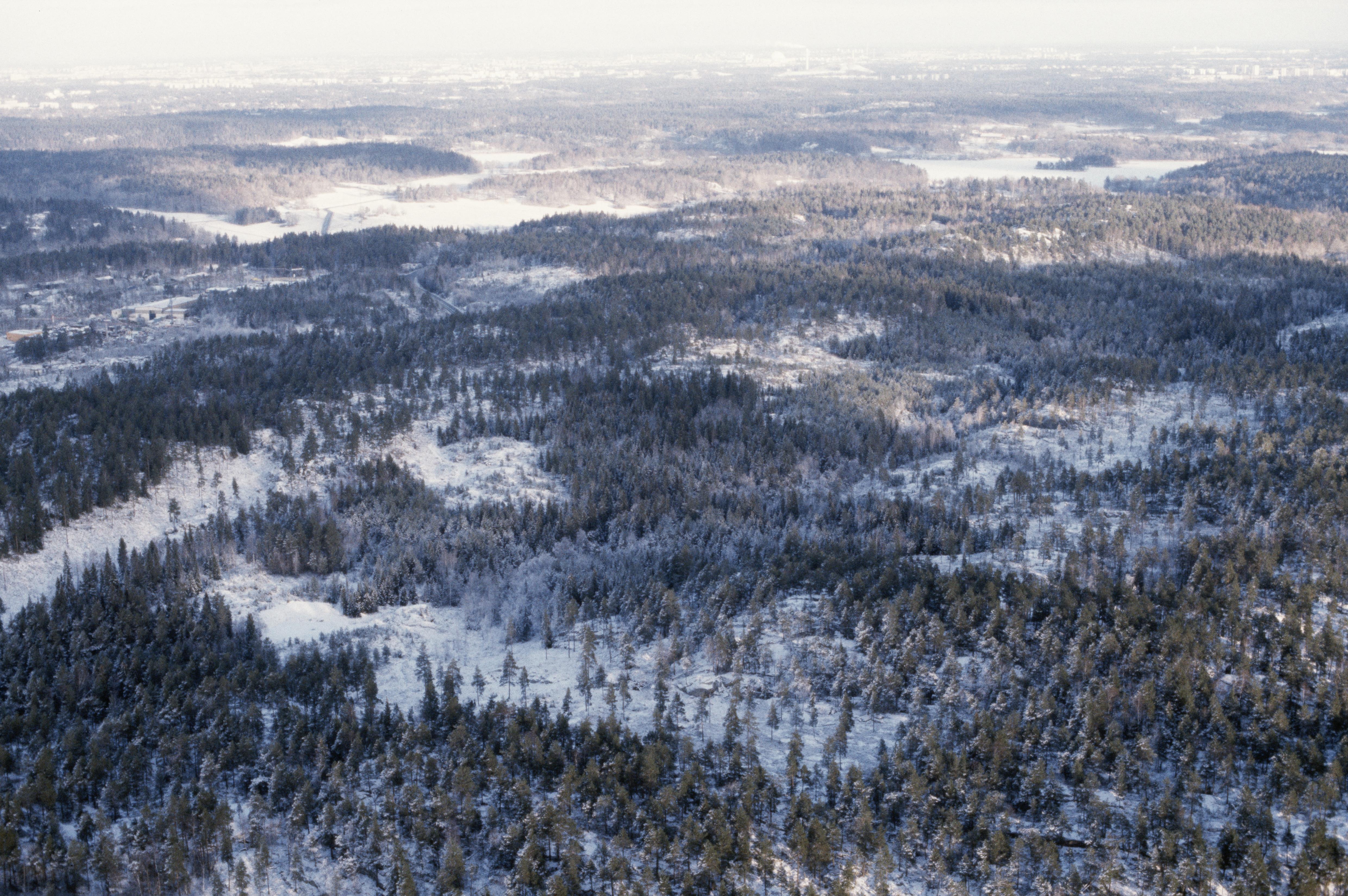 Beskrivning: Fornlämningsområde söder om Gladö Kvarn, norr om byn Östorp. Boplatser m.m. RAÄnr Huddinge 336:1, 339:1, 340:1 m.fl. I bildens övre del sjön Örlången, Högdalen och Stockholms stad. Bilden är tagen mot (väderstreck): NNO