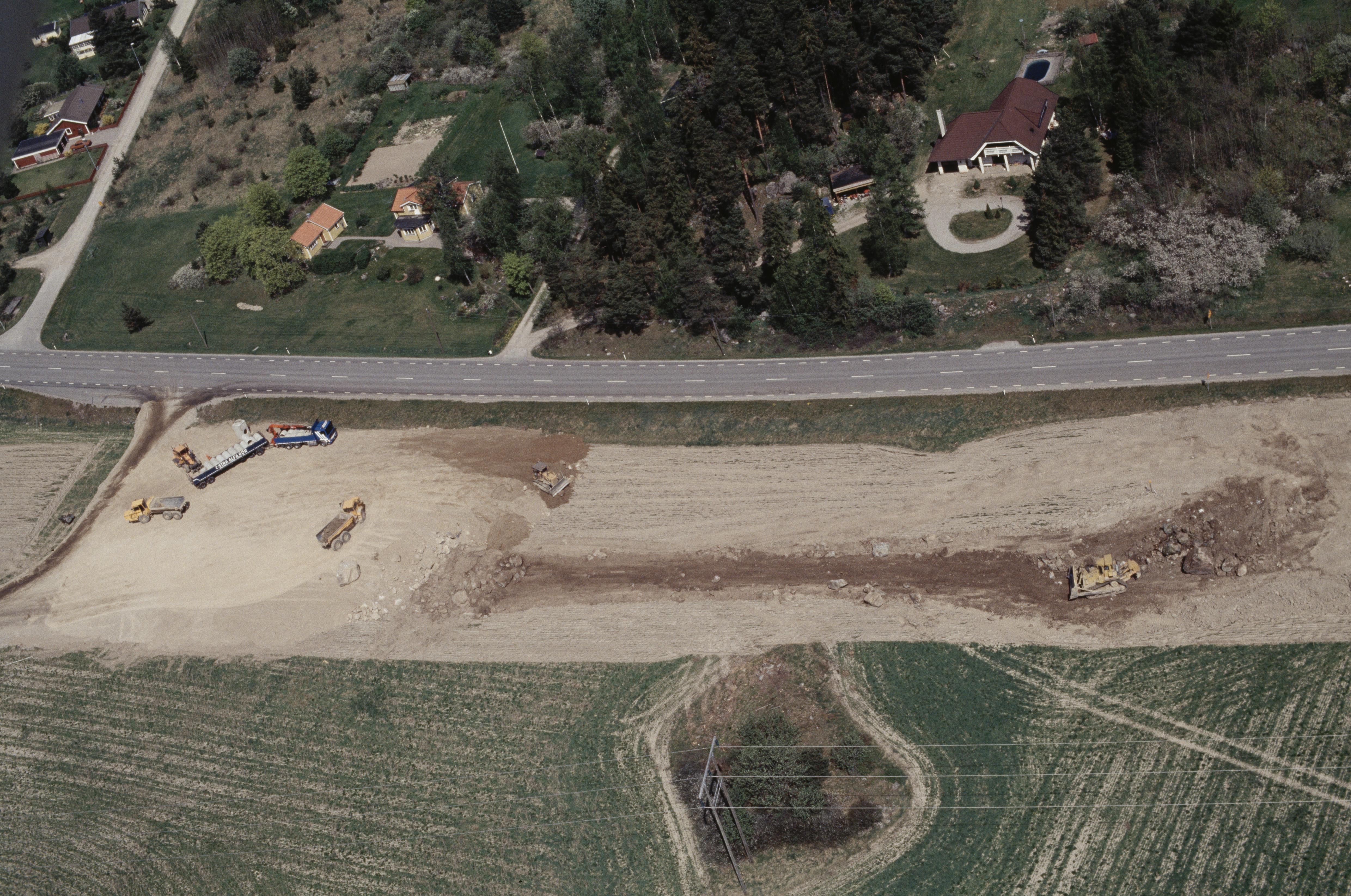 Beskrivning: Arkeologiska undersökningar innan vägbygge av E3 / E20 i området söder om Sörfjärden i Mälaren. Vid bildens mitt fyndplats och grav- och boplats RAÄnr Härad 80:1-2 m.fl. vid Hammartorps by. Bilden är tagen mot (väderstreck): NO