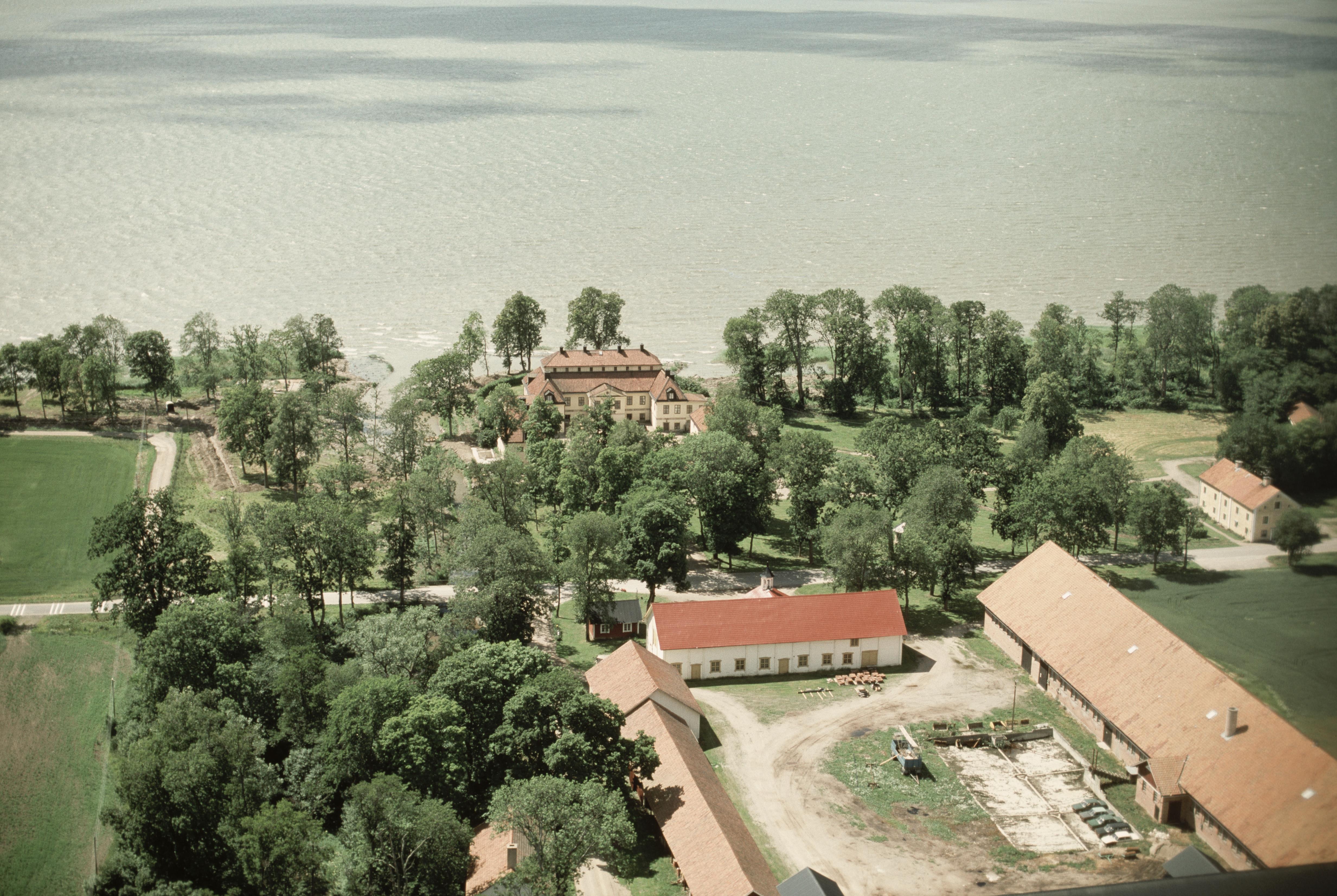 Beskrivning: Gimmersta herrgård RAÄnr Julita 25:1 vid Aspån och sjön Öljaren. Bredvid herrgården är åns utlopp i Öljaren. Bilden är tagen mot (väderstreck): SV