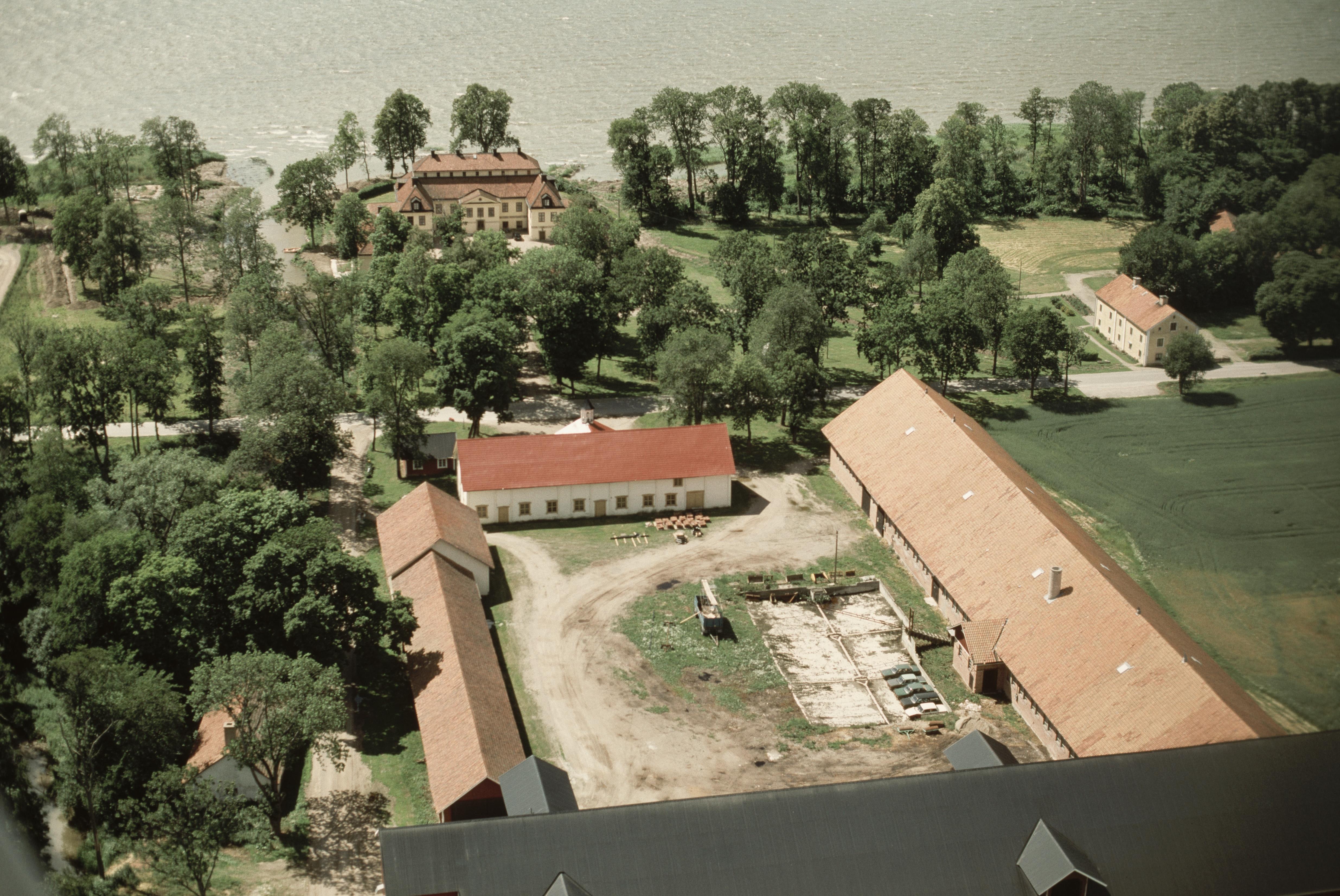 Beskrivning: Gimmersta herrgård RAÄnr Julita 25:1 vid Aspån och sjön Öljaren. Bredvid herrgården är åns utlopp i Öljaren. Bilden är tagen mot (väderstreck): SV