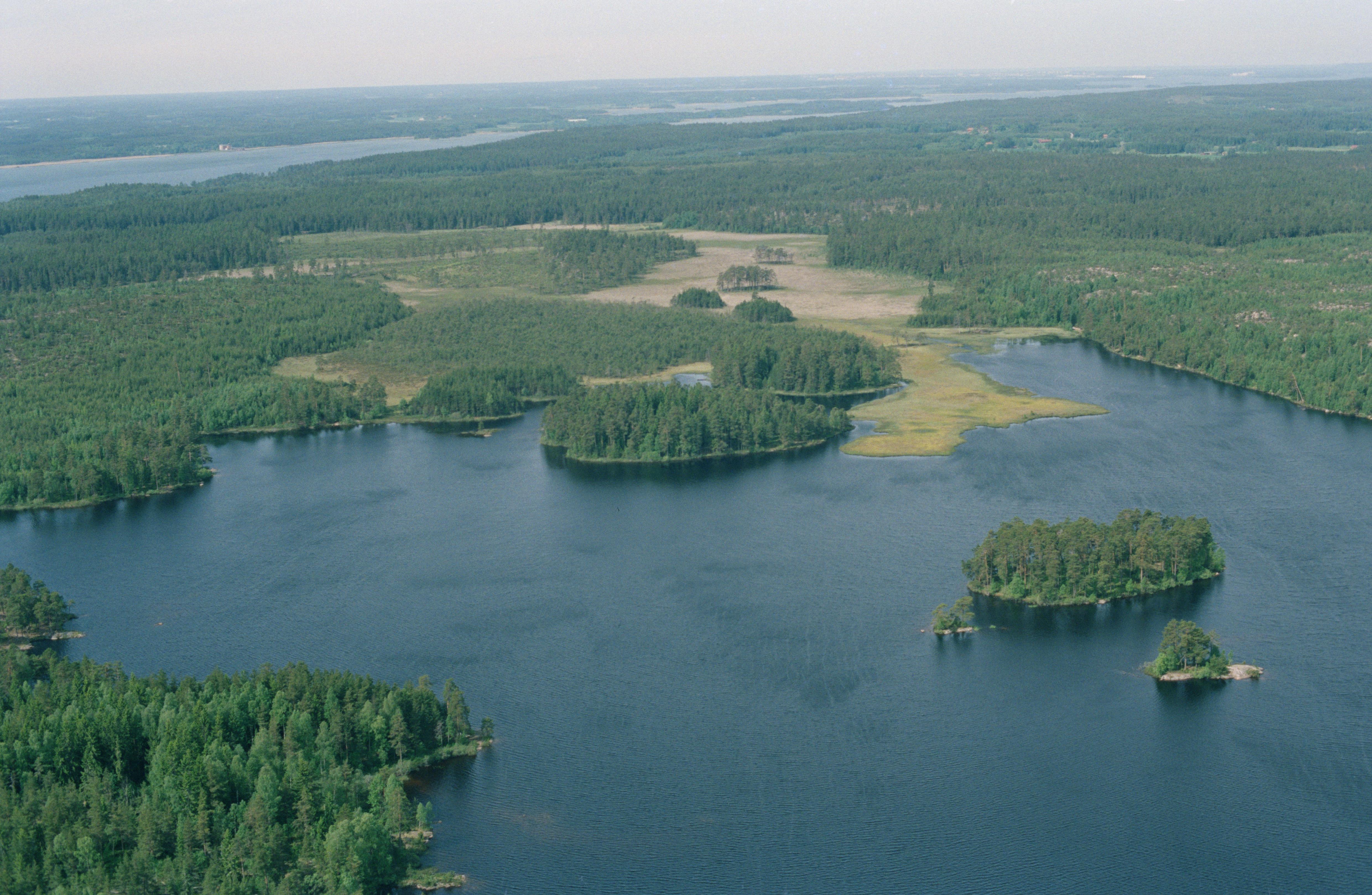 Beskrivning: Nävsjön norr om Bråviken. I bildens övre del Nävsjömossen med stenåldersboplats RAÄnr Kvarsebo 111:1, 117:1 m.fl. Bilden är tagen mot (väderstreck): SV
