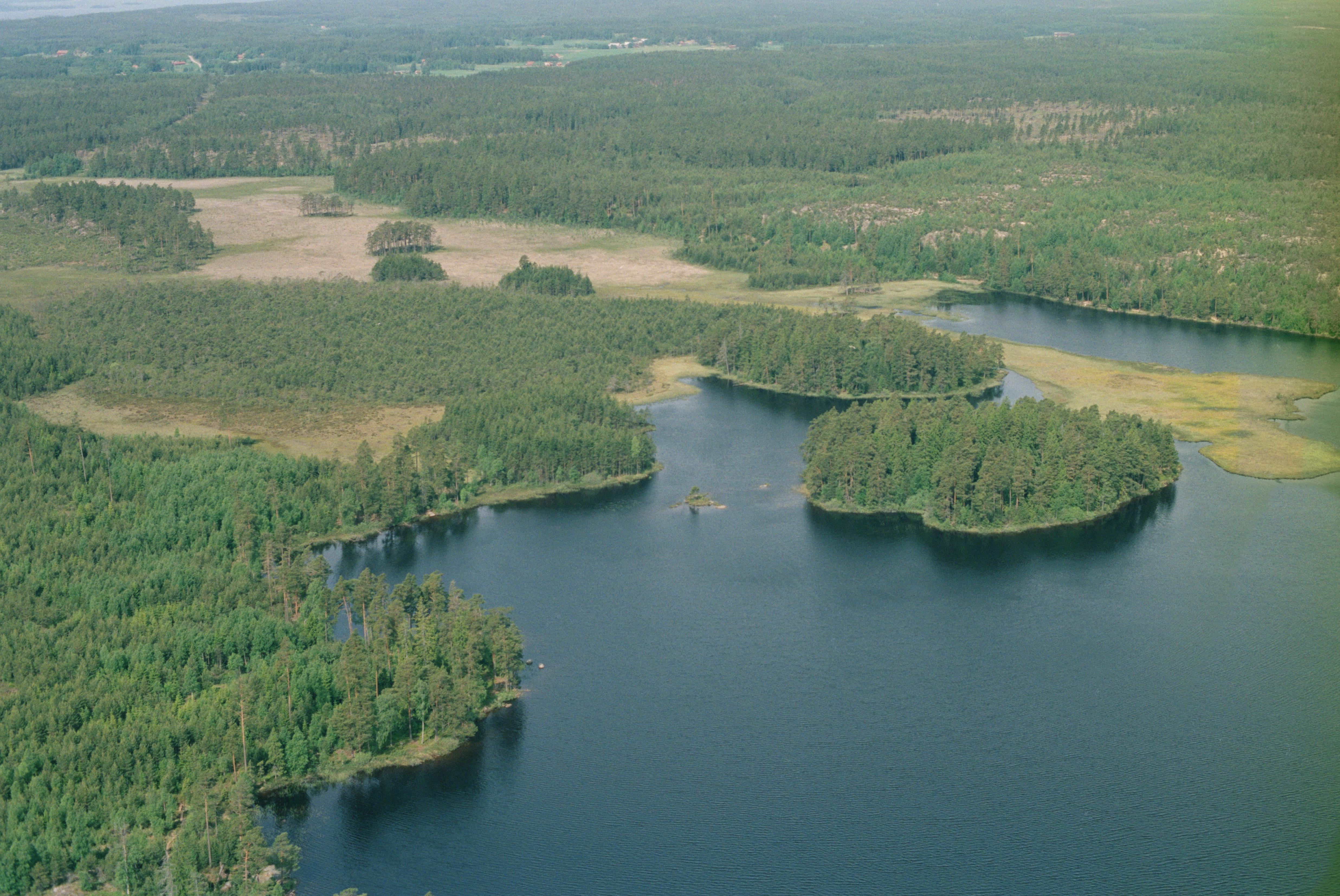Beskrivning: Nävsjön norr om Bråviken. I bildens övre del Nävsjömossen med stenåldersboplats RAÄnr Kvarsebo 111:1, 117:1 m.fl. Bilden är tagen mot (väderstreck): VSV