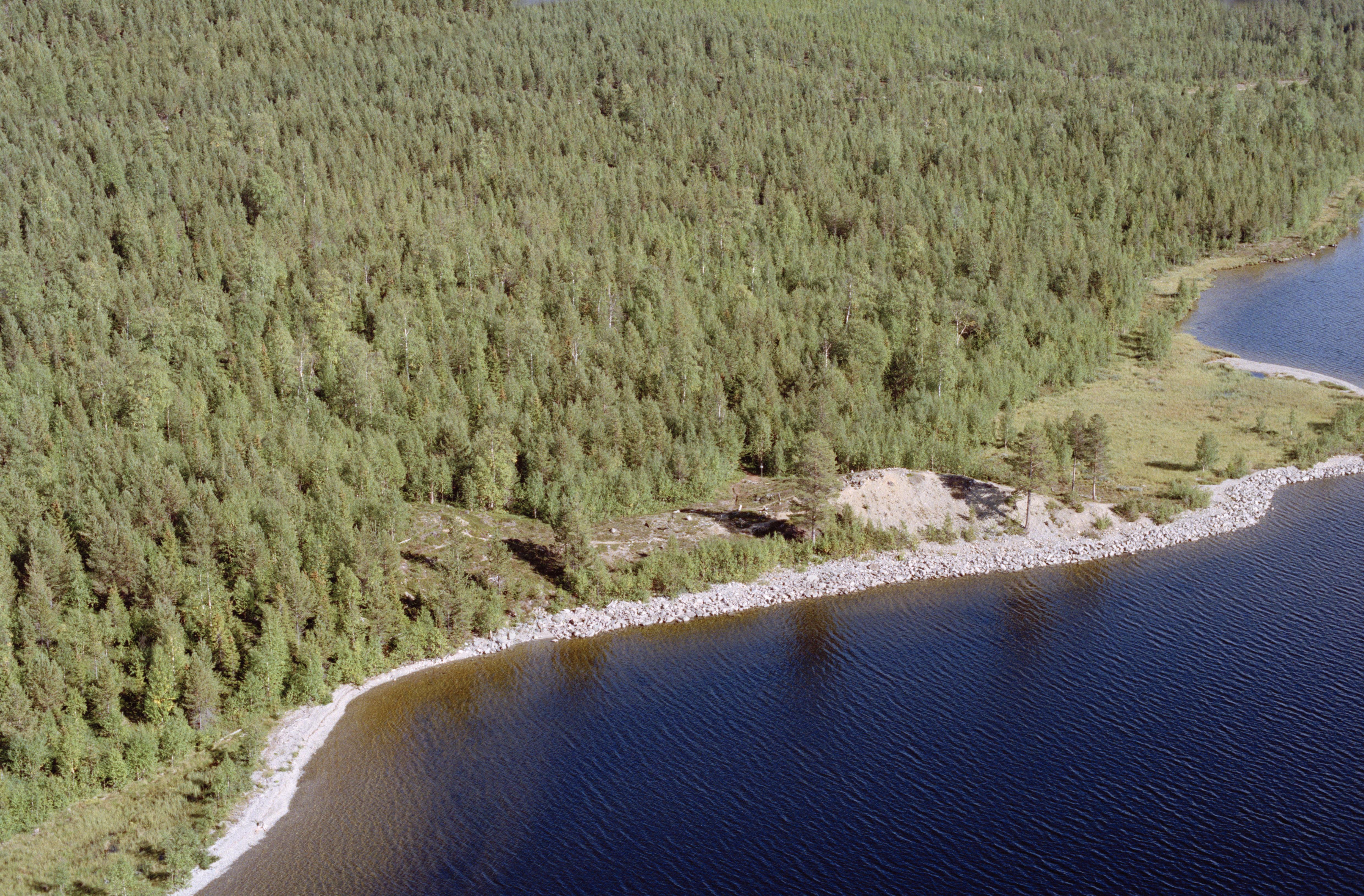 Beskrivning: Till höger gravfält Krankmårtenhögen (skrivs även (Krank-Mårtenhögen) RAÄnr Storsjö 9:1 vid Storsjön. I området även boplats RAÄnr Storsjö 154:1 och 254:1, fångstgrop Storsjö 155:1 m.m. Bilden är tagen mot (väderstreck): ONO